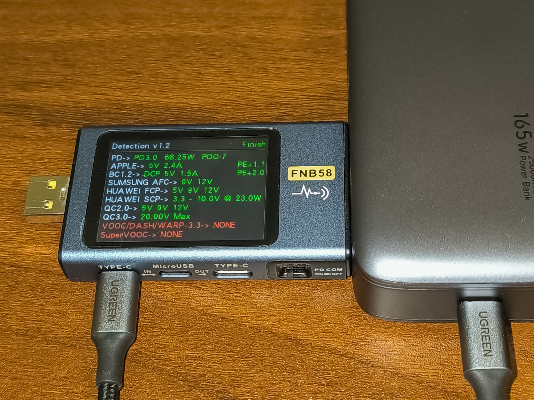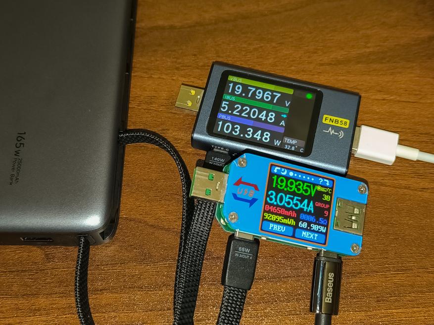 - USB-C Cable 1 + USB-C Cable 2: 103.34W + 60.90W. Суммарно 164W. Возможно было бы и больше, но подключенный по Cable 2 ноутбук больше 60W не брал.