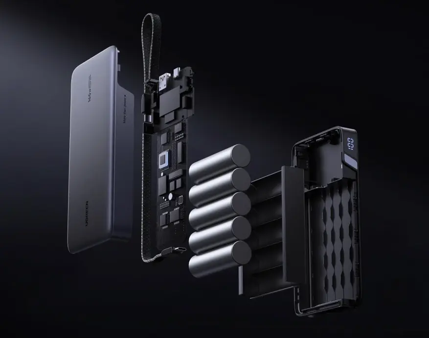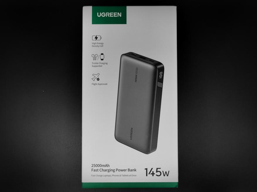- Ugreen PB205: Дизайн похож на тот, что и у обозреваемого внешнего аккумулятора, но конструктивно он проще — без встроенных кабелей. Ёмкость 25000mAh, общая максимальная мощность 145W, а максимальная мощность на одном порту 100W. Портов три штуки: два USB-C и один USB-A.