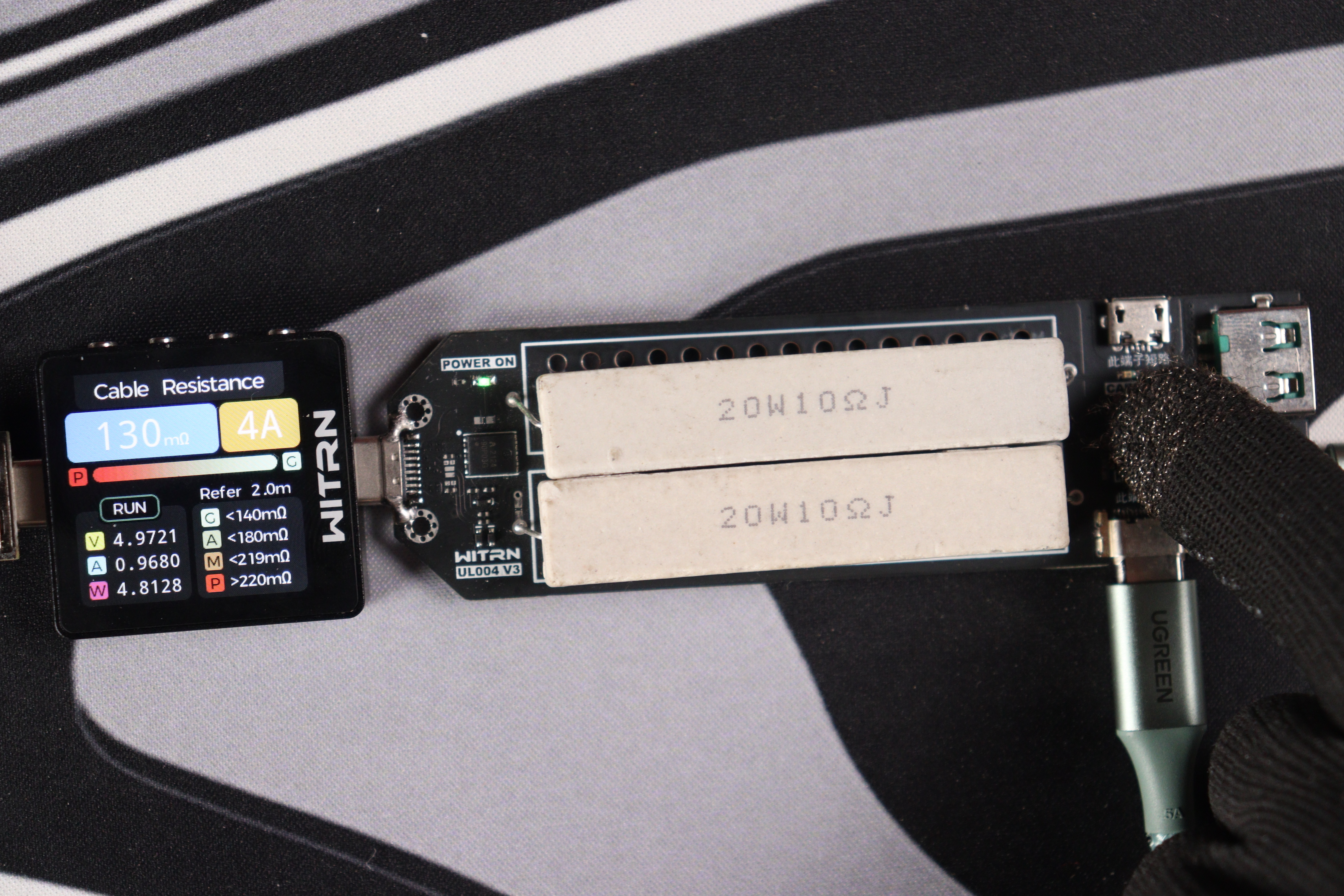 Измерение сопротивления показало результат в районе 130 мОм, что для двухметрового провода с сечением, рассчитанным на 5А, фактически эталонный показатель. Это означает, что при передаче максимальной мощности (скажем, 20В x 5А = 100Вт) падение напряжения на кабеле составит около 0,65 В — вполне приемлемо и не критично для зарядки ноутбуков или планшетов. Конечно, у более толстых или коротких кабелей сопротивление может быть ниже, но для повседневного использования US316 справляется без нареканий.