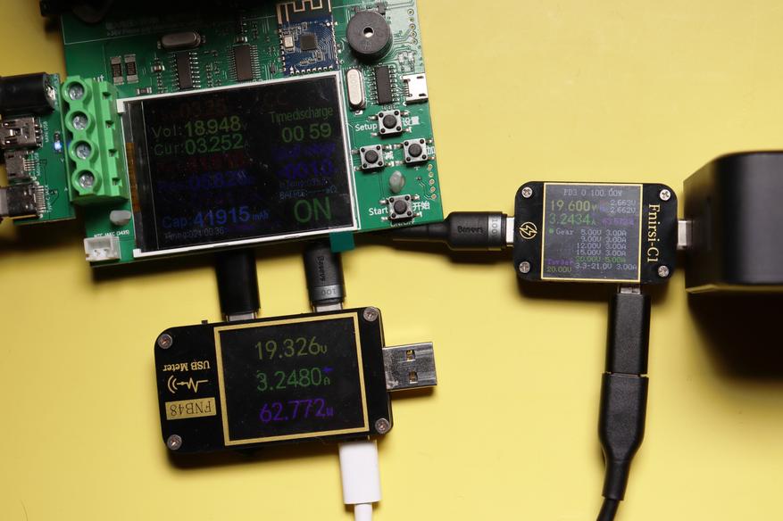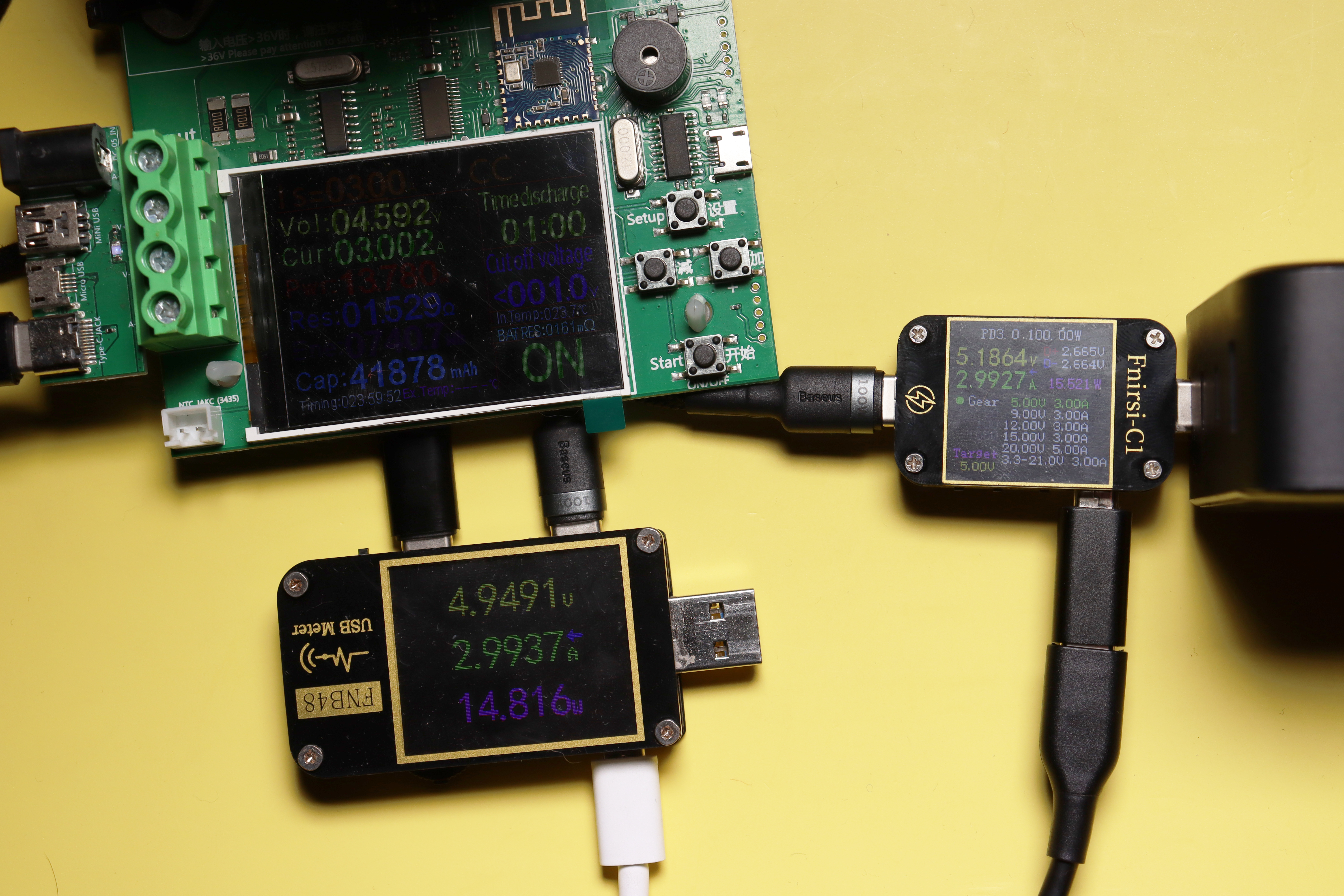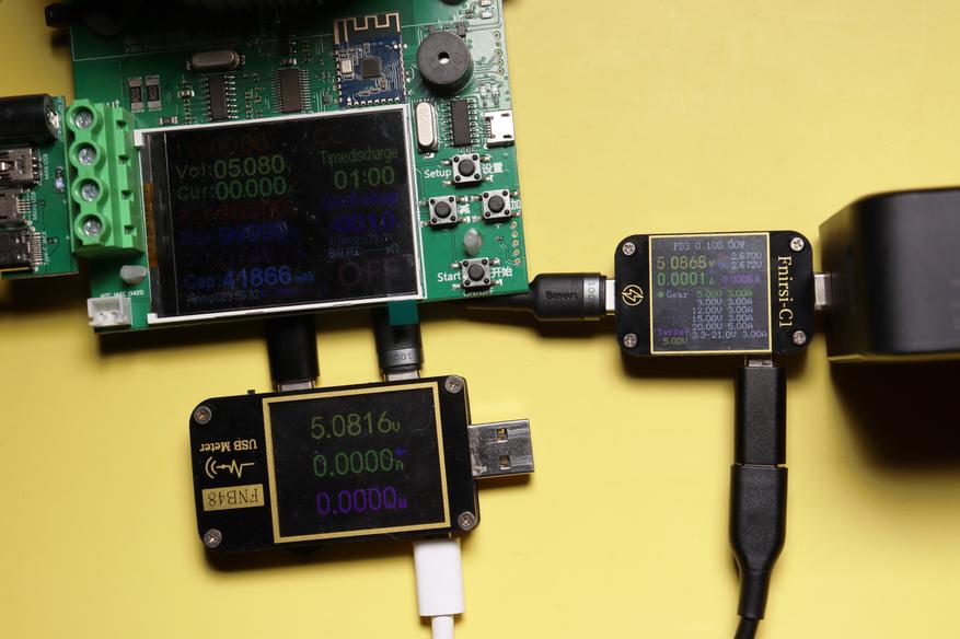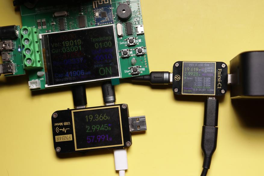 Далее проведен тест на проверку падения напряжения во всех популярных режимах работы: 5В/3А, 9В/3А, 12В/3А, 15В/3А, 20В/3.25А, 20В/5А. В качестве измерителей напряжения на входе и выходе кабеля использовались тестеры FNIRSI C1 и FNB48. Источником питания выступало зарядное устройство Ugreen GaN 100W CD226.