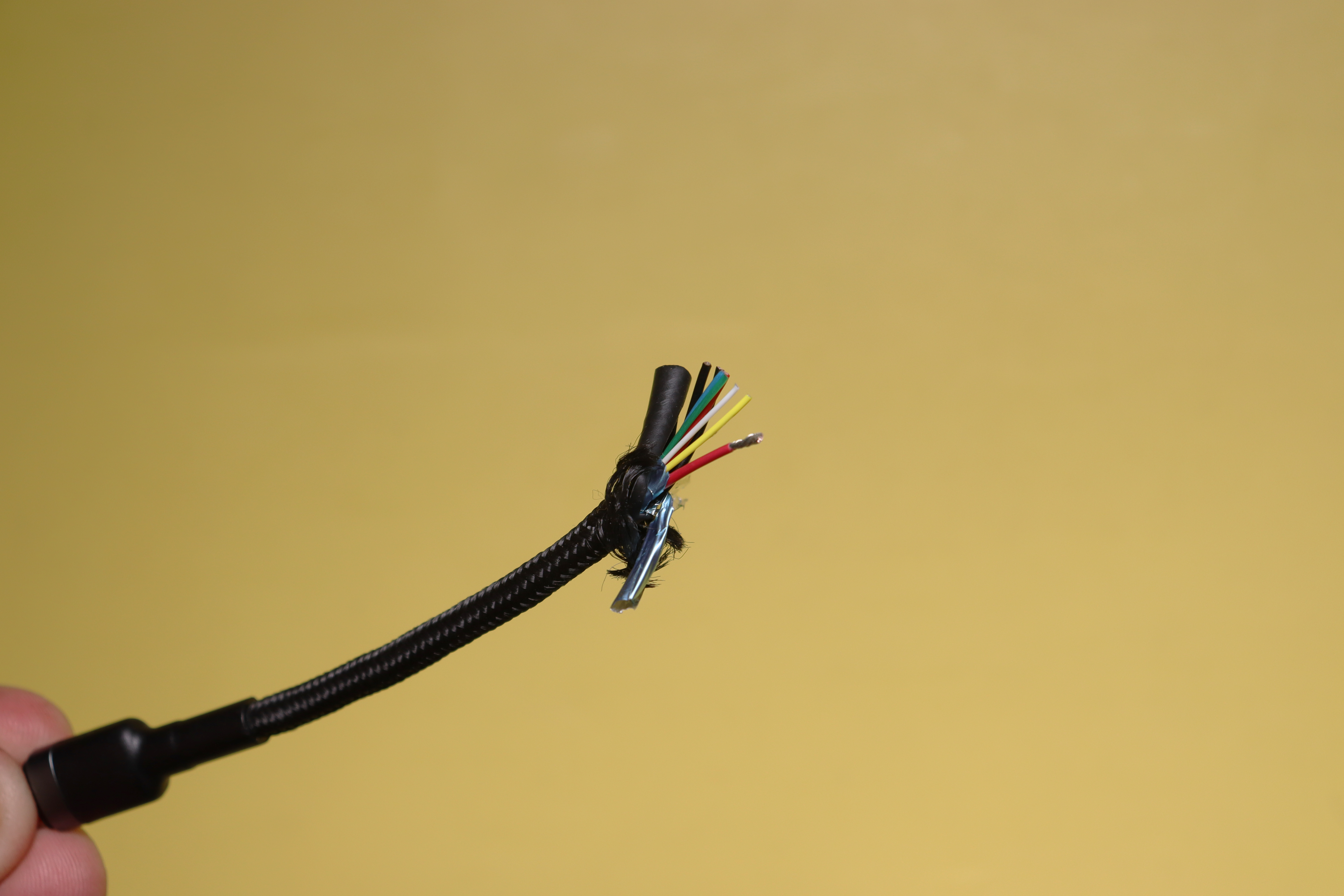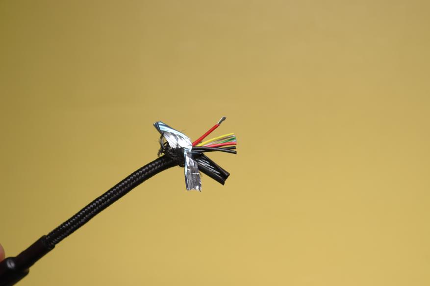 Внутри кабеля скрыто 8 жил: 4 информационных, 2 чуть потолще - плюсовых и 2 минусовых. Дополнительных материалов, служащих для улучшения прочности, например ниток из стекловолокна, как было в случае с кабелем от Ugreen, нет.
