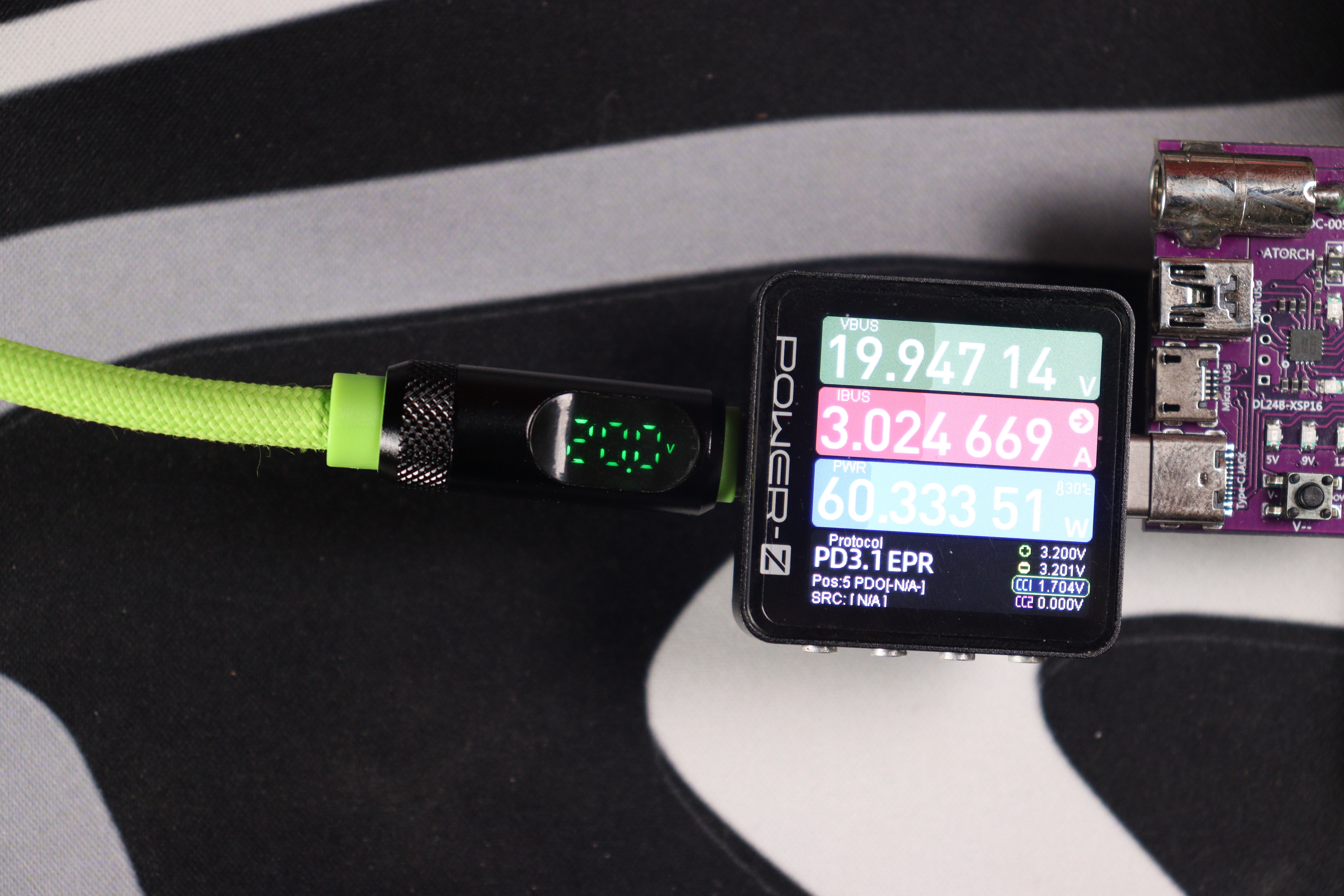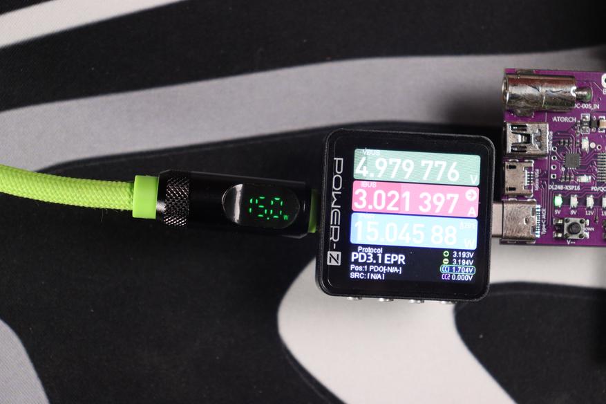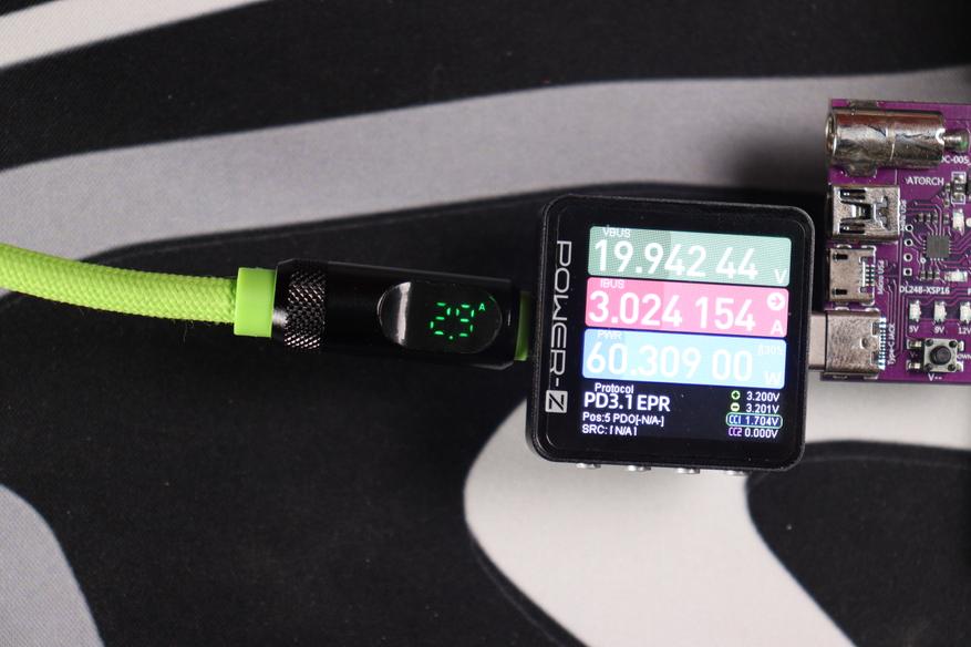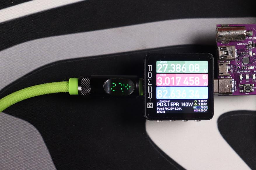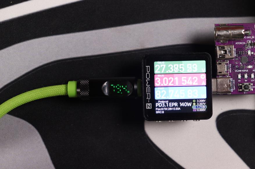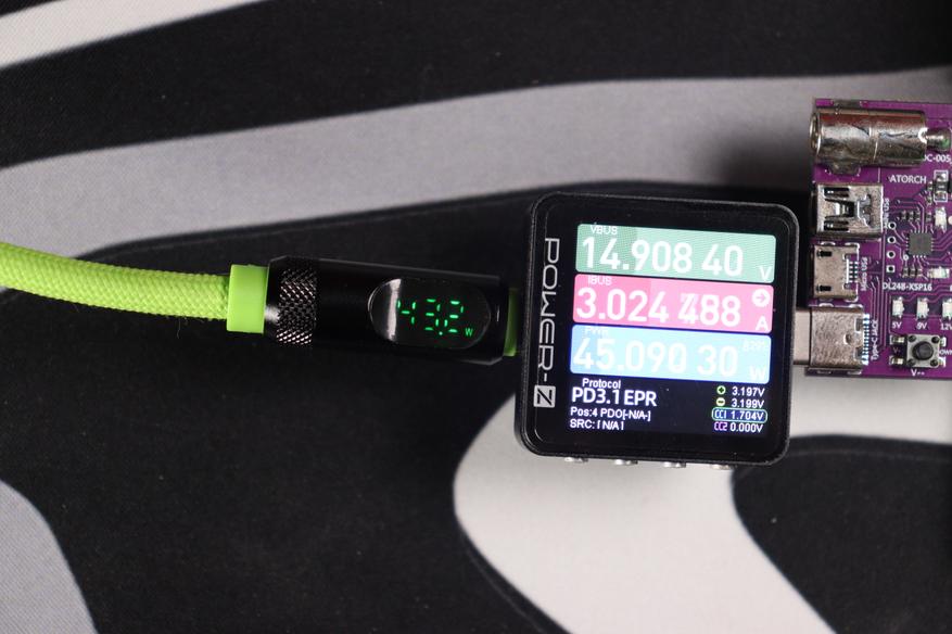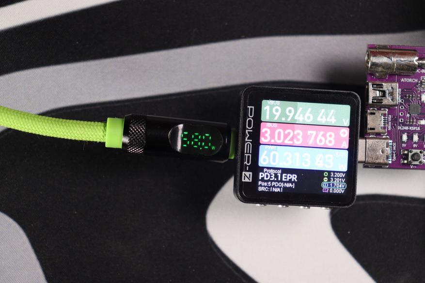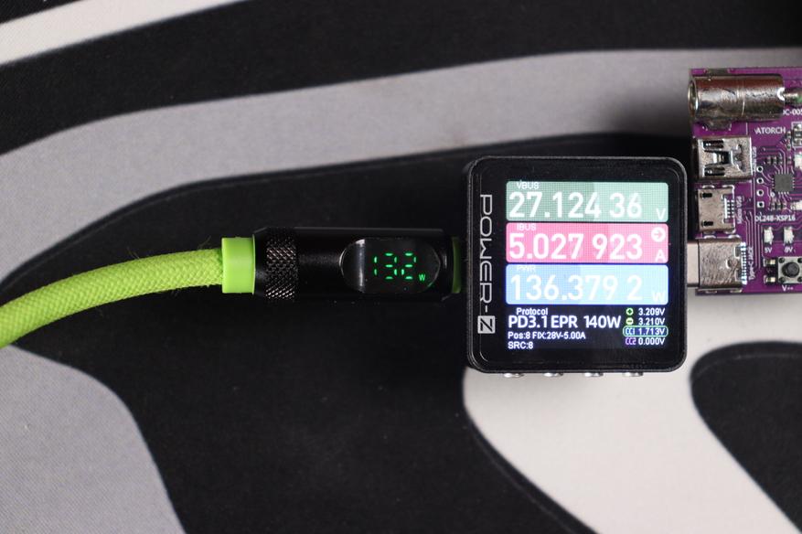 При выполнении практических испытаний показал стабильность и надежность работы. При взаимодействии со ста сорока-ваттным источником питания стандарта ПаверДеливери3.1, шнур осуществлял устойчивую подачу полной заявленной мощности. С менее производительными адаптерами метка безошибочно регулировала рабочие значения.