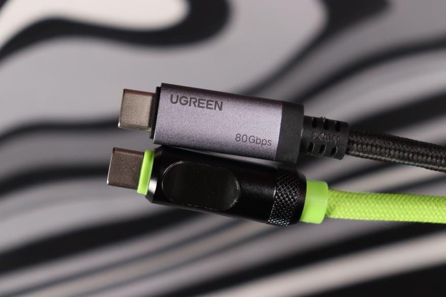Для габаритных размеров области коннекторов сравнил его с флагманским кабелем от Ugreen, способным передавать до 80 Гбит/с при той же мощности 240 Вт.