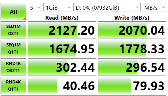 Дополнительно был проведен тест на реальную пропускная способность в программе CrystalDiskMark через внешний кейс Ugreen CM559, и кабель справляется без нареканий с данной задачей