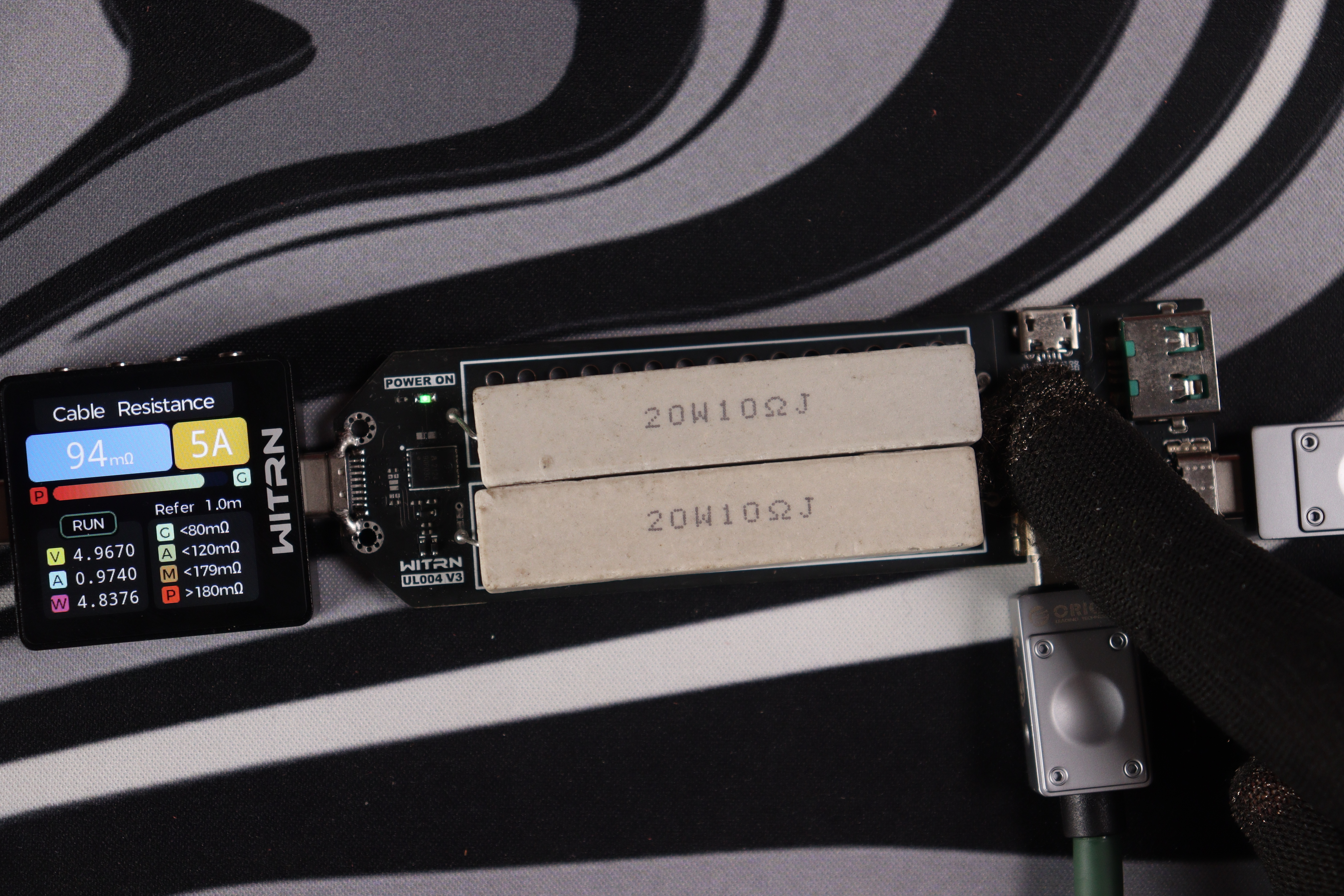ORICO 240B2-40 показал себя как высококачественный многозадачный кабель, способный одновременно передавать данные на высоких скоростях и питание с поддержкой USB4/Thunderbolt4 и PowerDelivery до 240Вт. Кабель отличается исключительной гибкостью, легко принимает любую форму и удобно хранится, что выгодно отличает его от конкурентов. Тестирование передачи данных показало стабильные скорости 17-21 Гбит/с (ограничение тестового оборудования), а внутреннее сопротивление (~94мОм) подтверждает качественные проводники. При энергопередаче до 140Вт кабель не перегревался, а силиконовая оболочка оставалась едва тёплой. В целом, ORICO 240B2-40 сочетает надежность, комфорт и высокую производительность, делая его выбором для современных устройств на все случаи жизни.