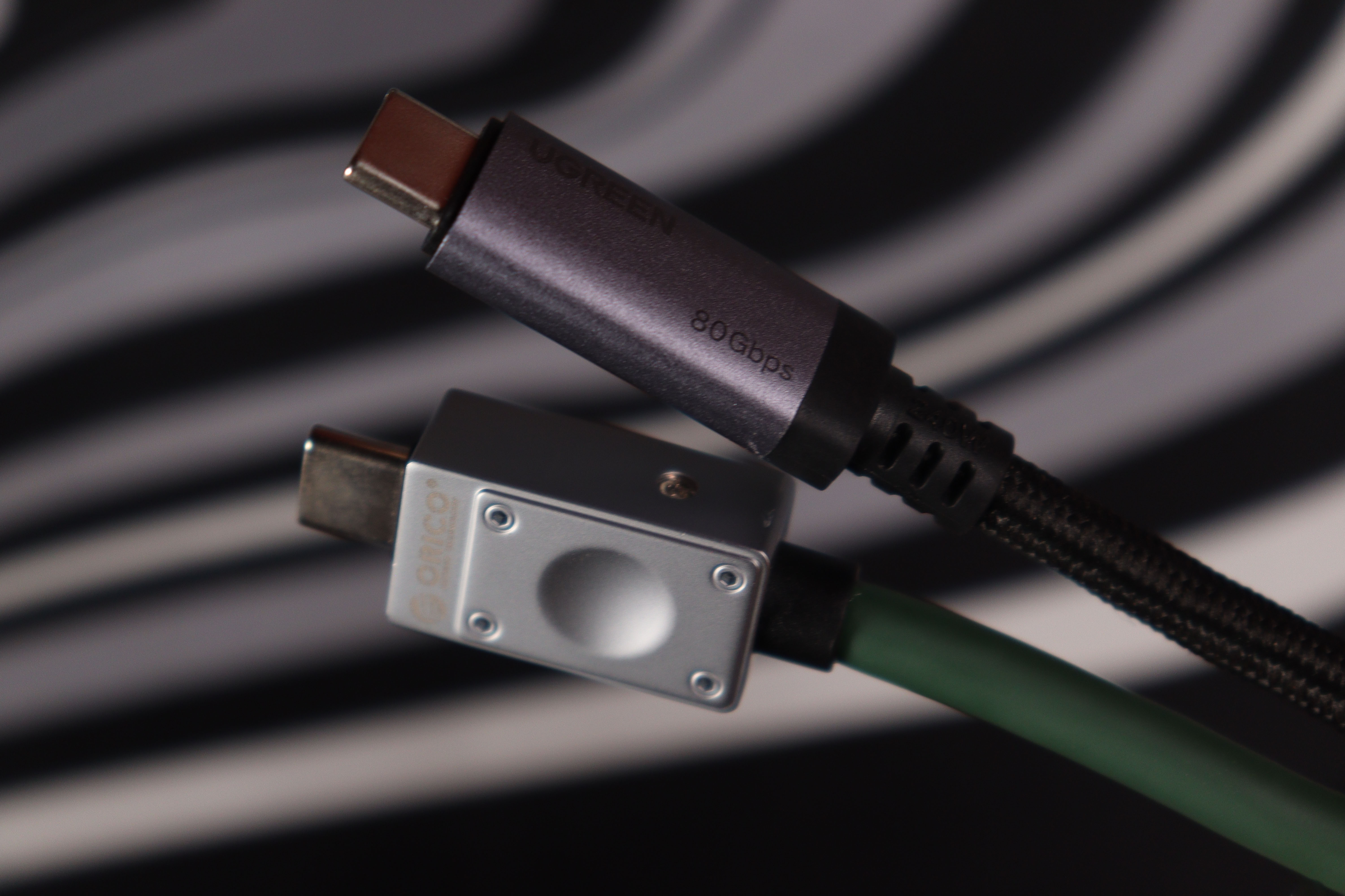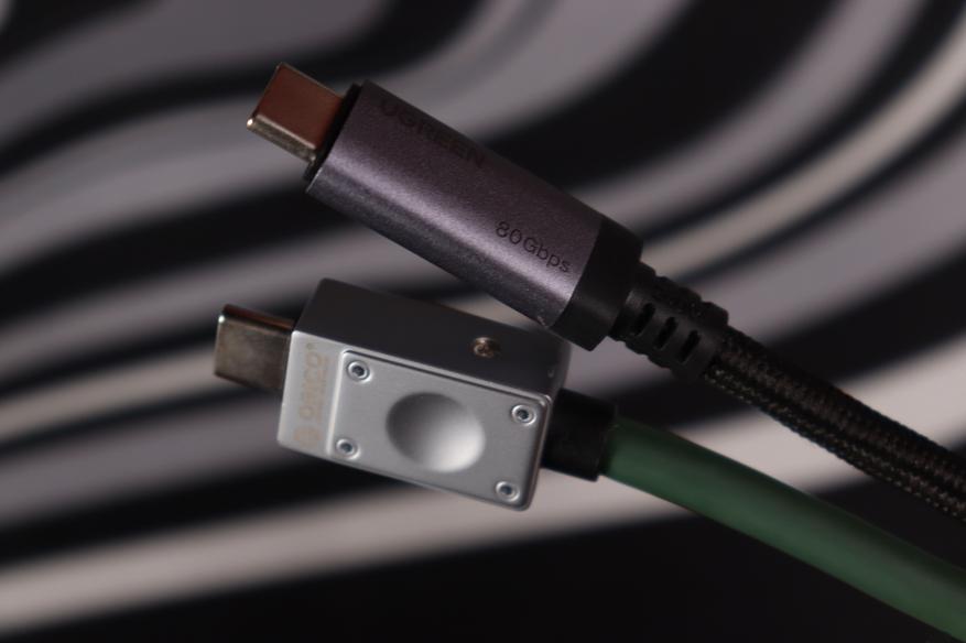 При сравнении с конкурентами, например, тем же Ugreеn 80Gbps, разница ощущается мгновенно. Ugreen демонстрирует более традиционный подход с текстильной оплёткой и стандартной жёсткостью. ORICO 240B2-40 кардинально отличается — его силиконовая поверхность делает шнур невероятно гибким и податливым.