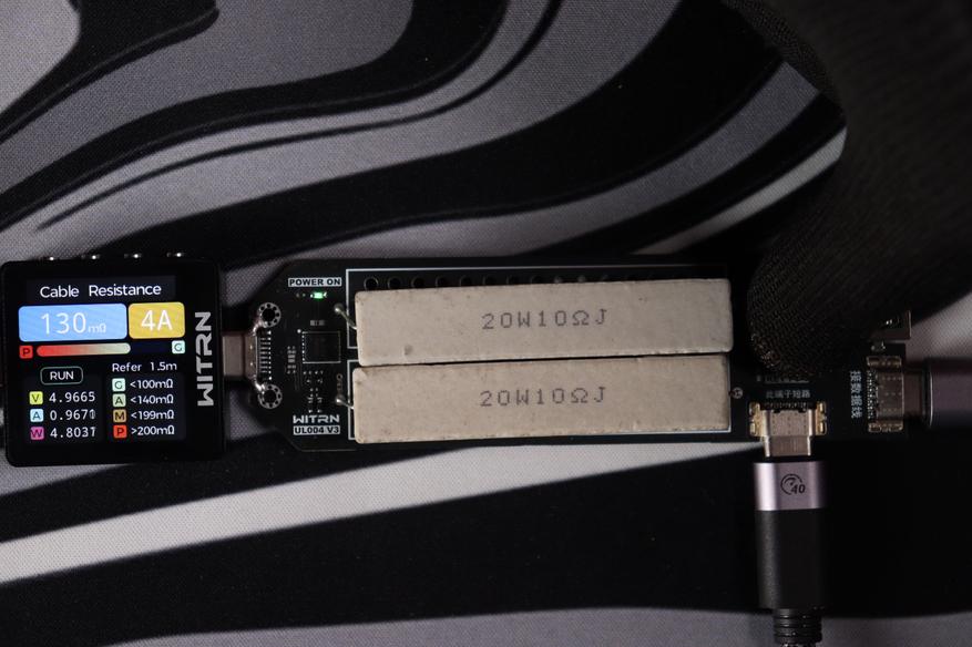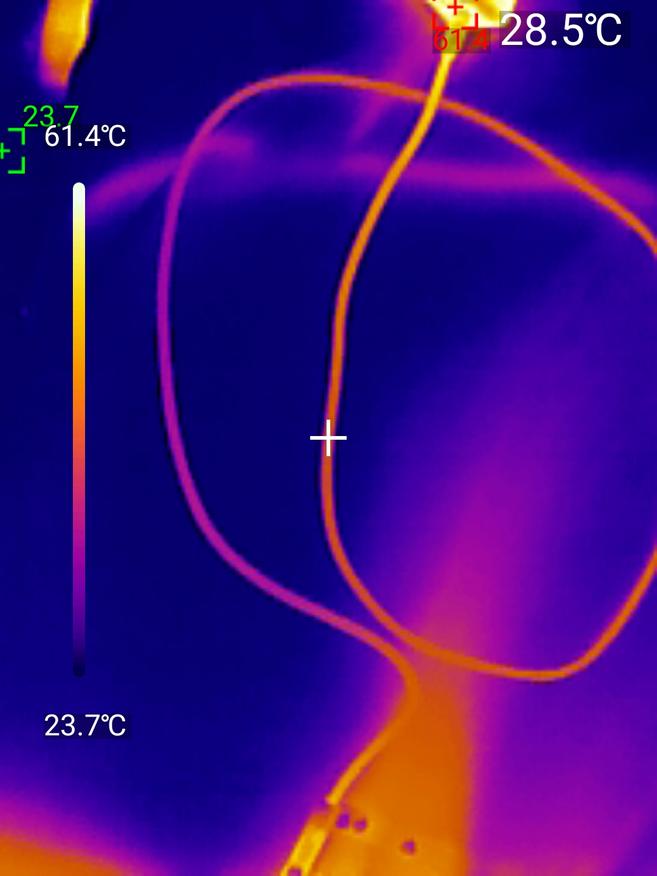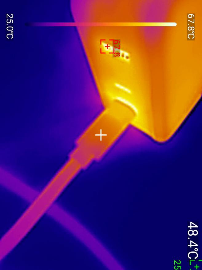 По части зарядки всё по-прежнему в норме, на мощности до 140 Вт — кабель справился без проблем, правильно согласовывал все режимы PowеrDelivеrу. Через час эксплуатации на максимальном режиме коннекторы нагрелись умеренно, покрытие кабеля было едва тёплым. Использовался термокамера для фиксации показаний UNI-Т UТI261М — всё соответствует норме.
