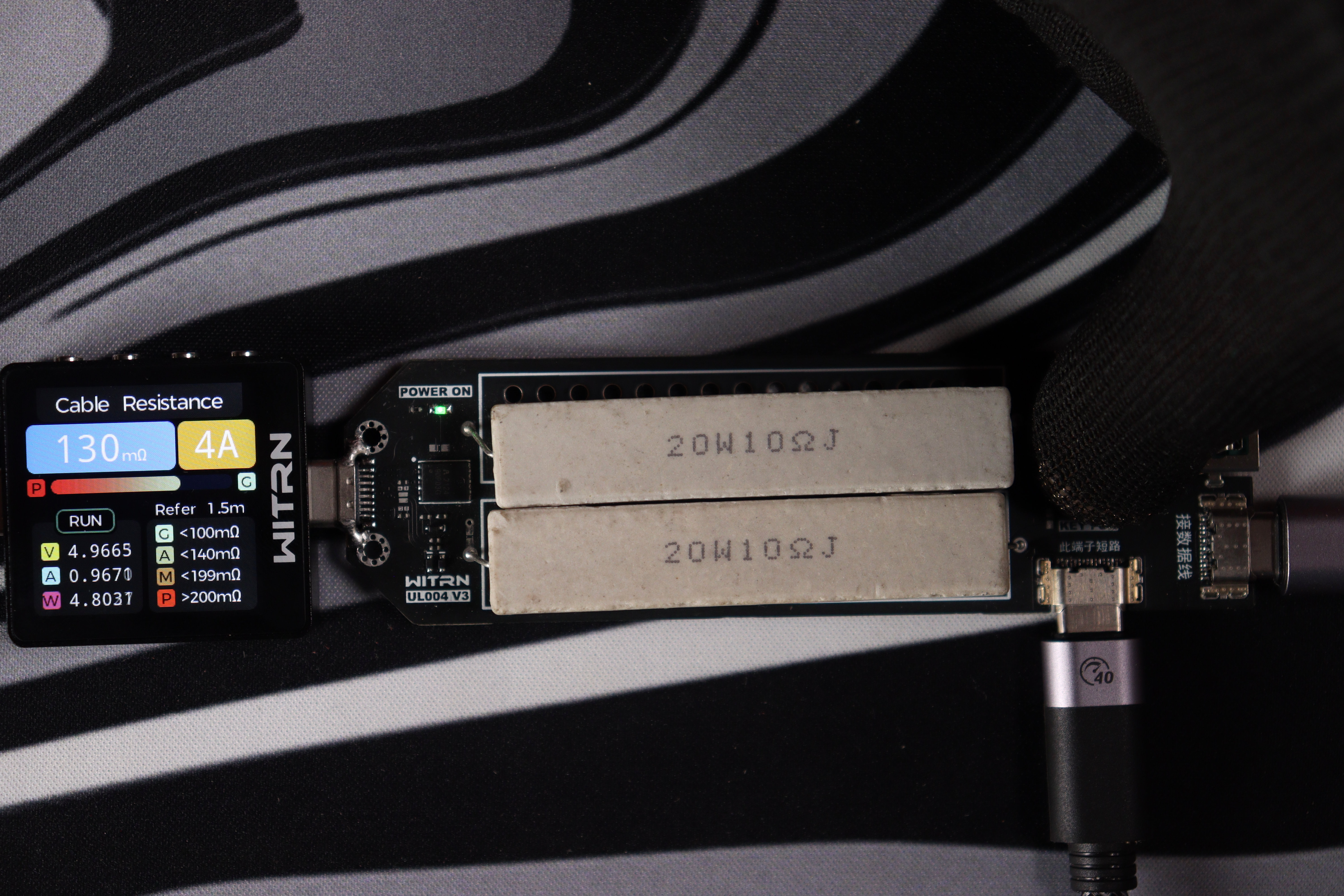 Сопротивление оказалось на уровне 130мОм — это достойный результат для длины 1.5м, достаточный для стабильной передачи питания.