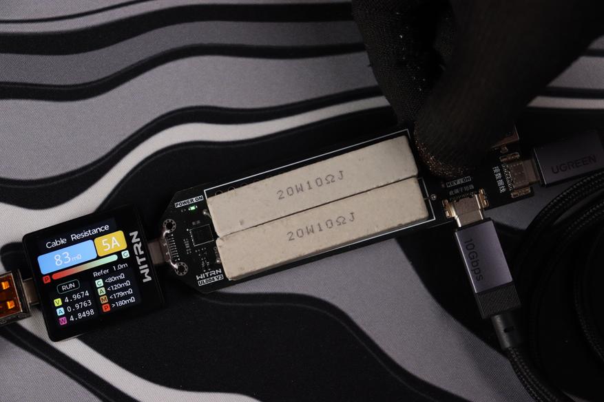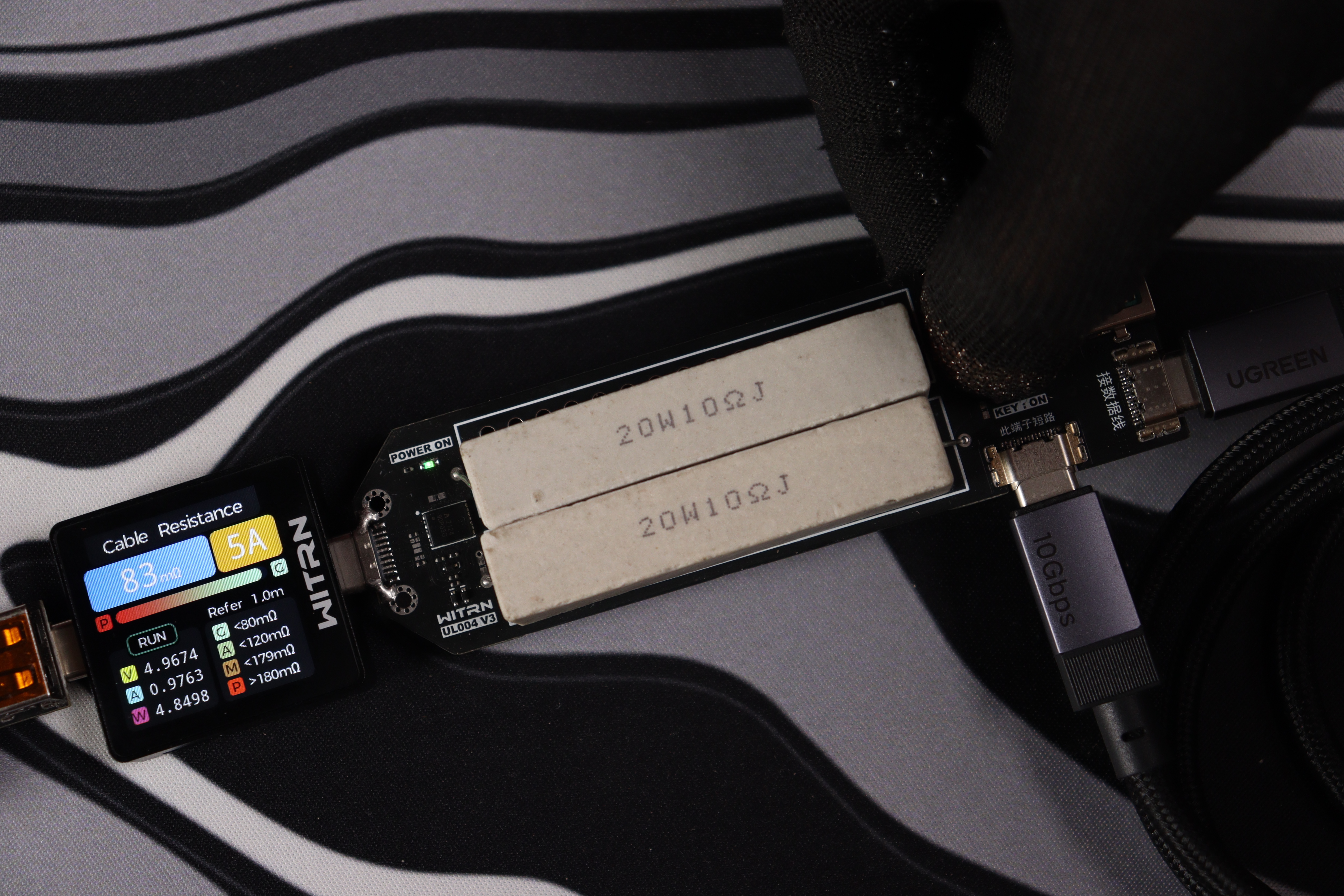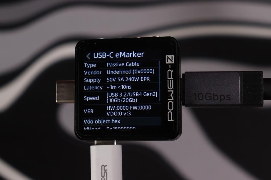 Хотя шнур позиционируют как вариант со скоростью передачи 10 Гбит/с, но встроенный электронный маркер на практике поддерживает до 20Гбит/с, что было проверено на тестовом стенде с UGRЕEN CМ559. При передаче больших файлов кабель показал бесперебойную работу с полной отдачей скорости