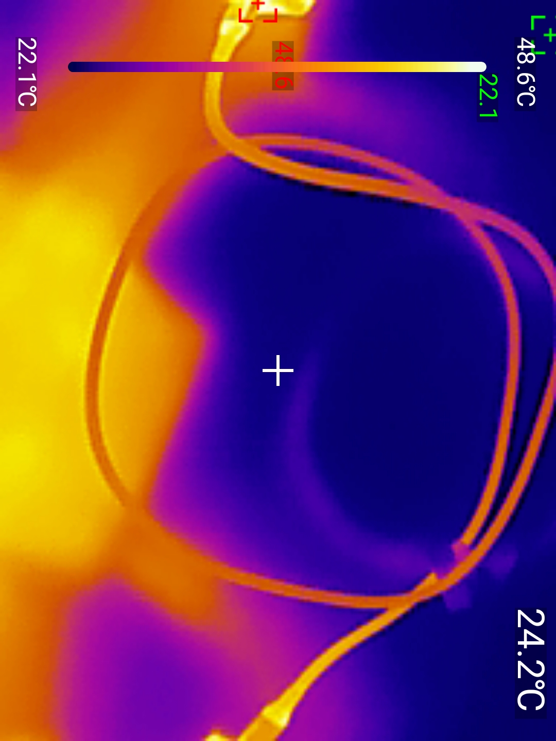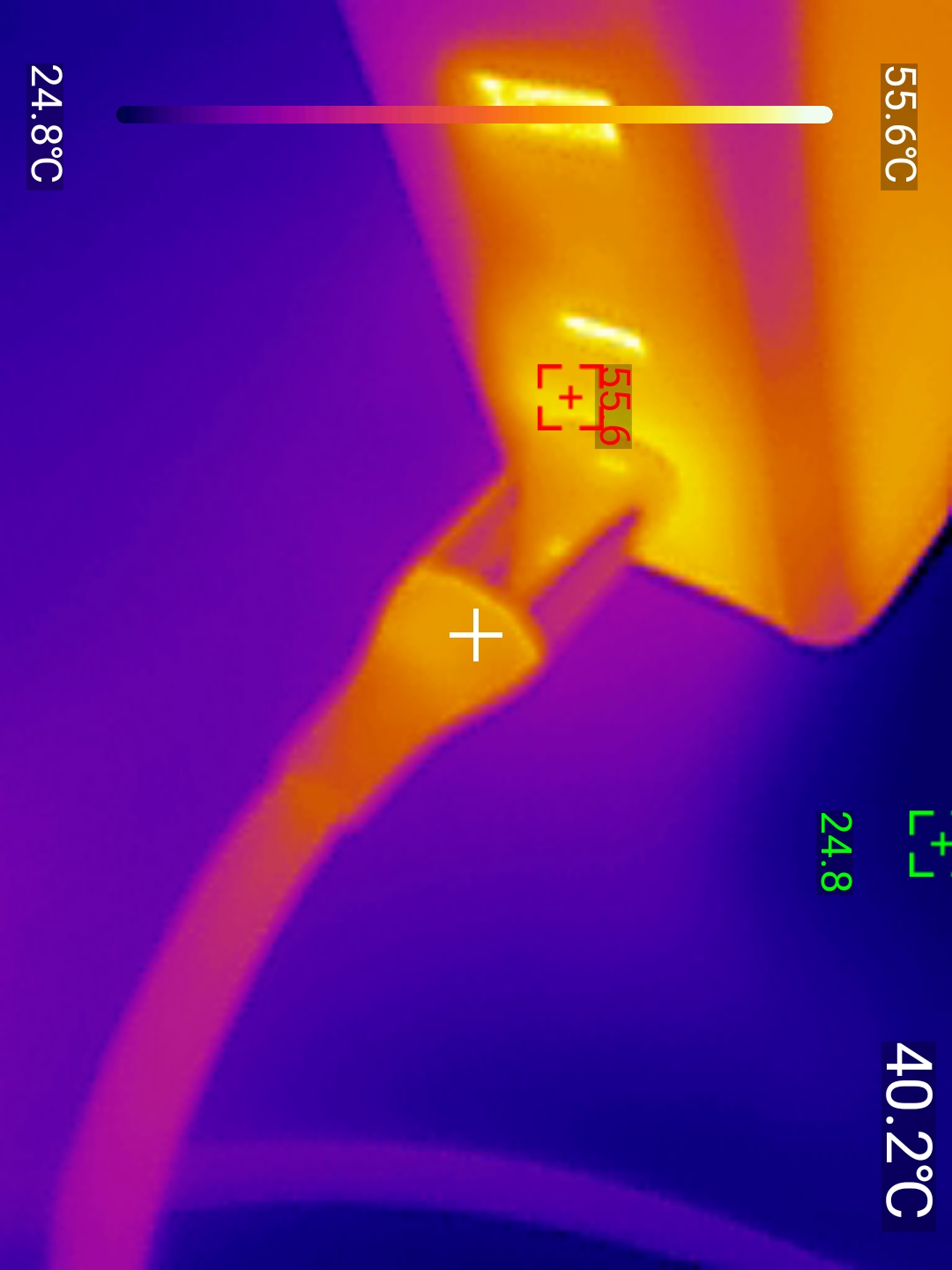 Длительная эксплуатация под нагрузкой не приводит к критическому повышению температуры. Используемые материалы и конструкция обеспечивают адекватный теплоотвод, исключая риск перегрева компонентов, что и подтверждает термограмма тепловизора UNI-T UTI260M спустя почти час теста на максимальной мощности