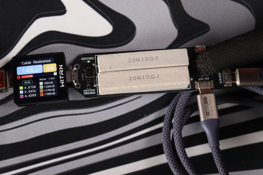 Измерение сопротивления показало, что кабель имеет не лучшие, но далеко от плохих проводников, сопротивление находится на уровне 148мОм (учитывая, что лучшие экземпляры показывали значение на уровне 75-80мОм).