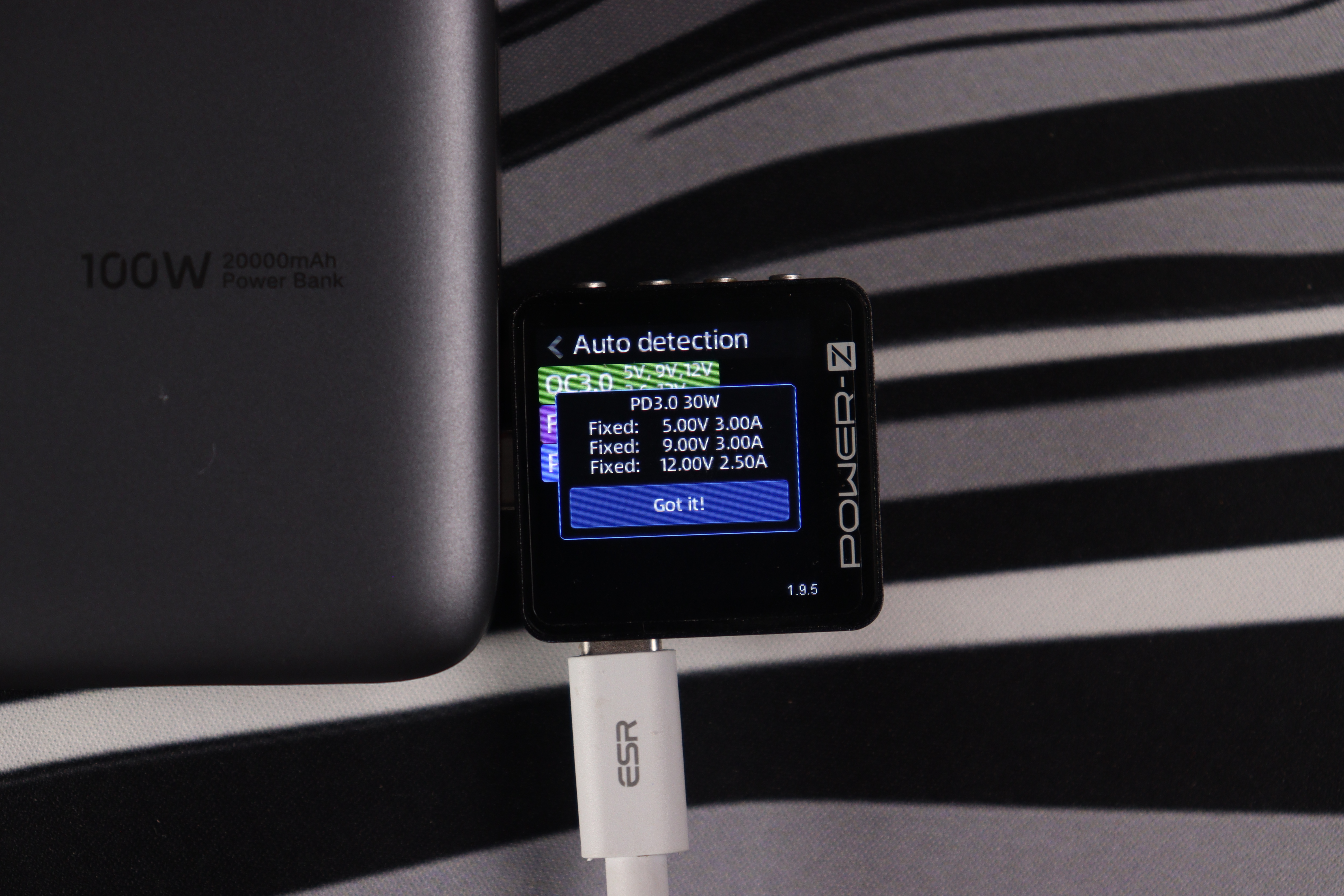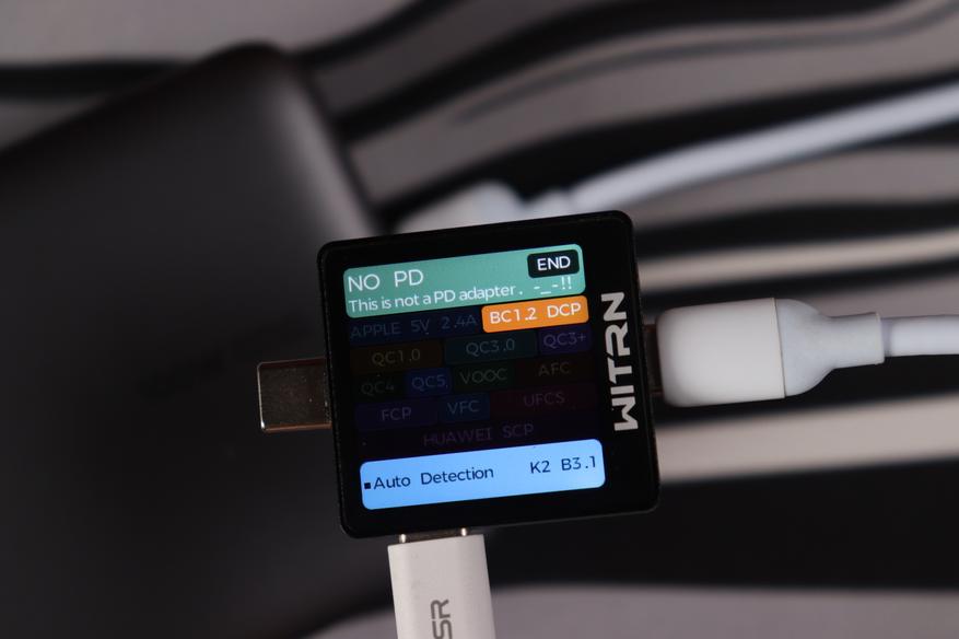 Несмотря на заявления производителя о совместимости с нескольких протоколов, мои показомеры показали поддержку только поддержку только Battery Charge, напряжение которого не превышает 5В. Вероятно Ugreen изменили схемотехнику устройства и слегка урезали порт по возможностям.