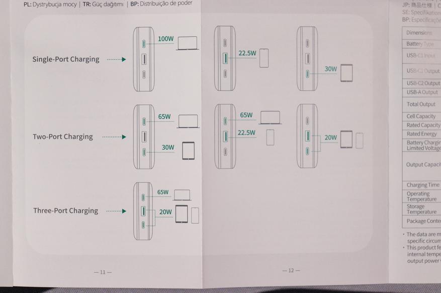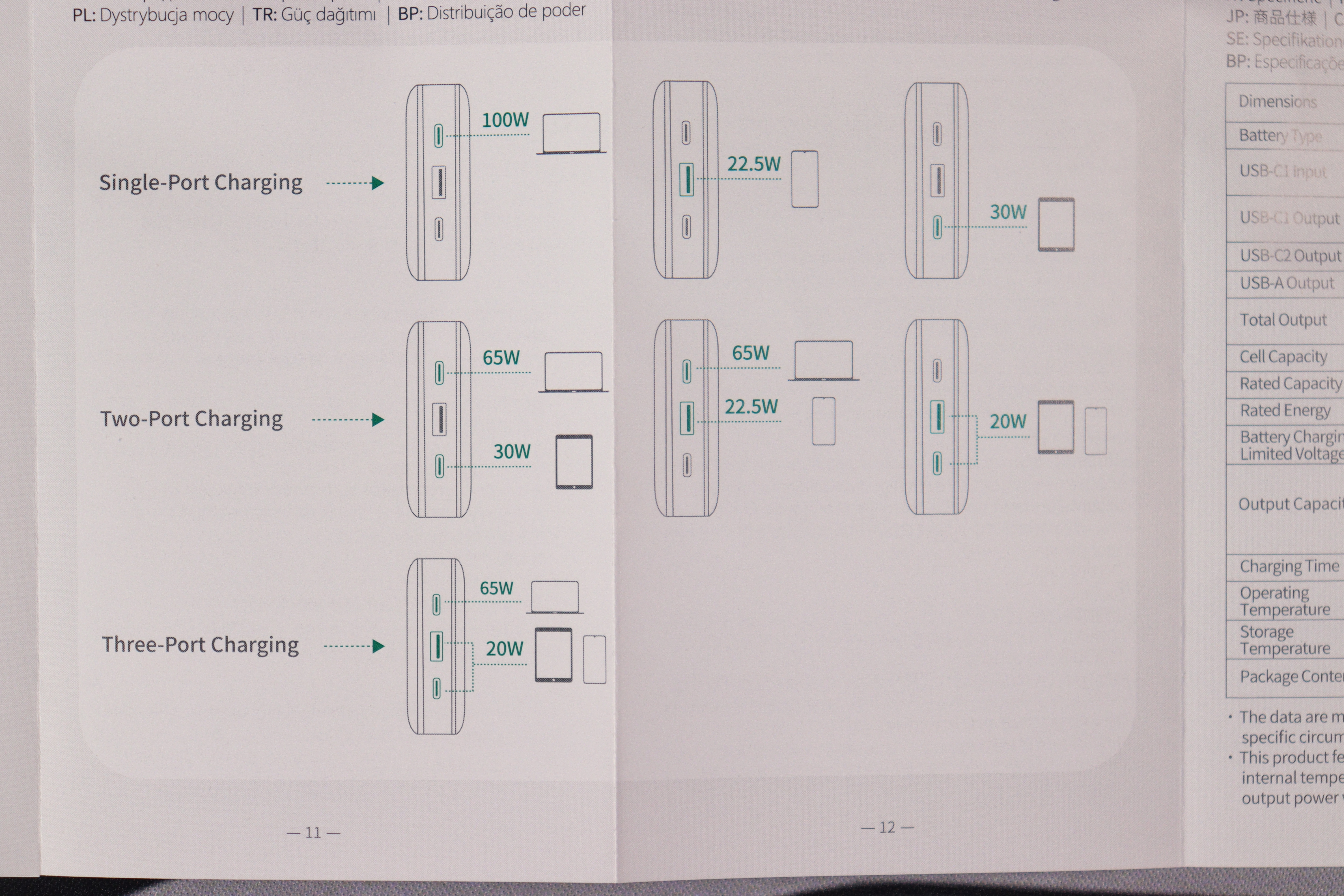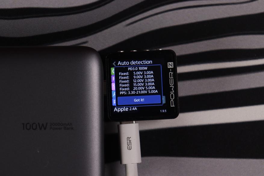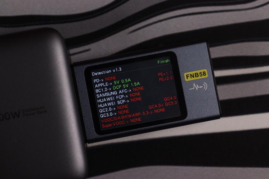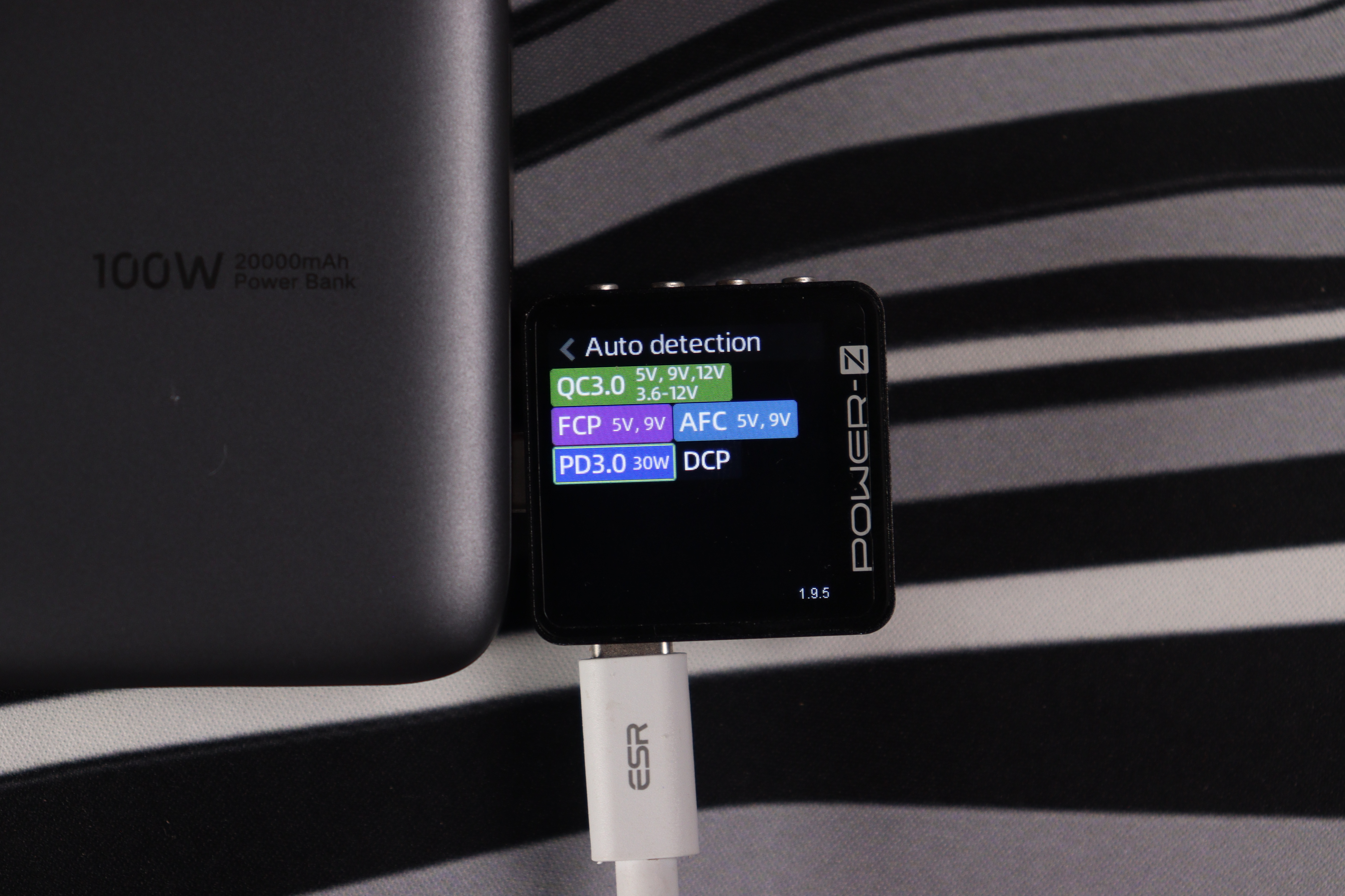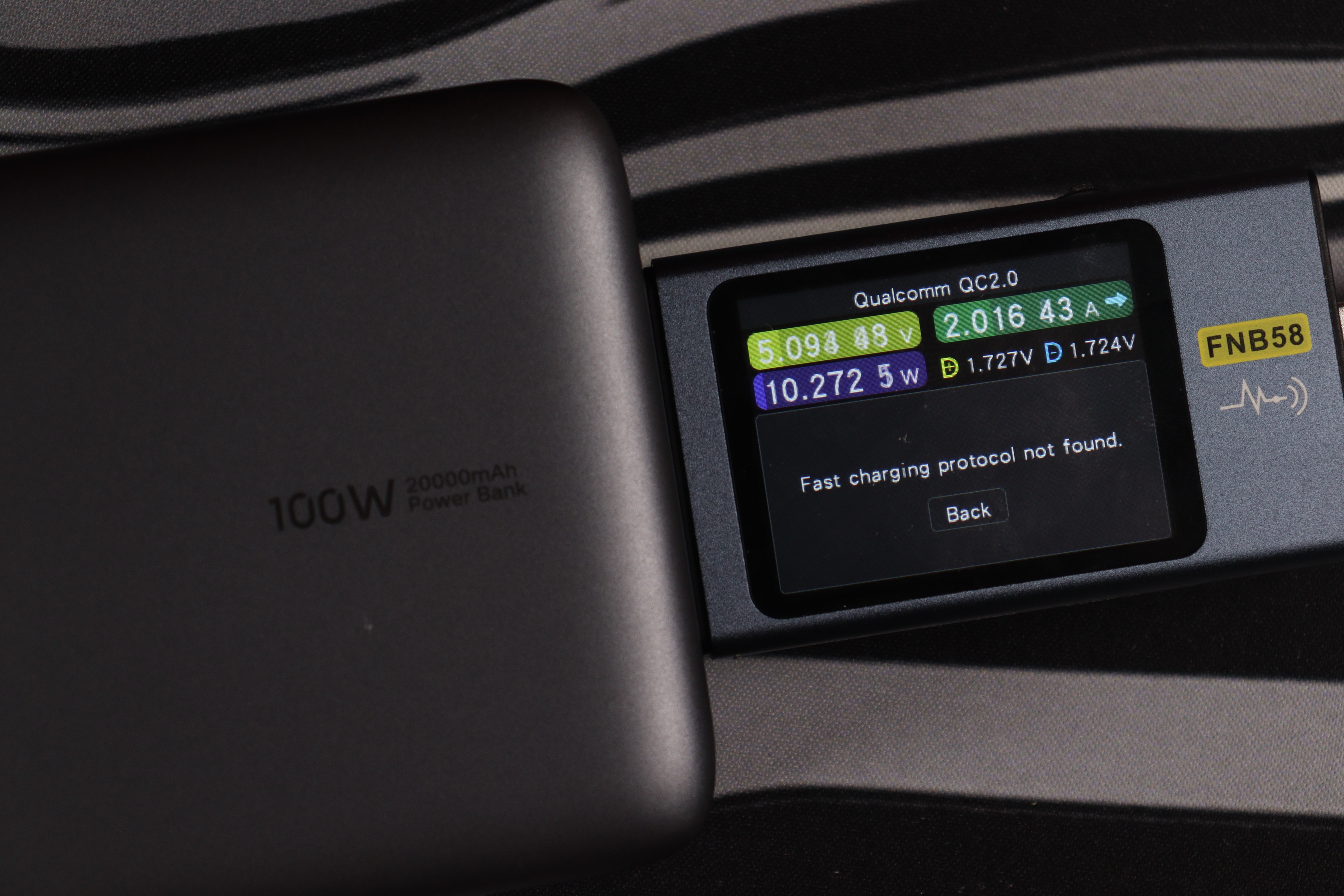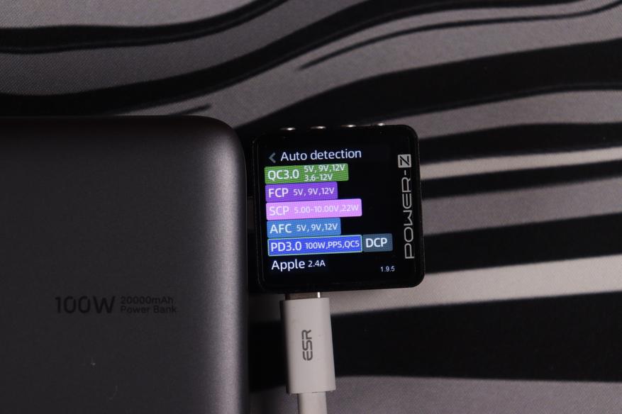 Аккумулятор поддерживает множество актуальных протоколов скоростной подзарядки, включая PD 3.0 (мощность до 100 Вт через первый USB-C разъём и до 30 Вт через второй, оба с функцией PPS). Подобная универсальность гарантирует эффективное взаимодействие с гаджетами разных брендов. Единственным недостатком является отсутствие поддержки UFCS — единого протокола быстрой зарядки, используемого в китайских смартфонах.