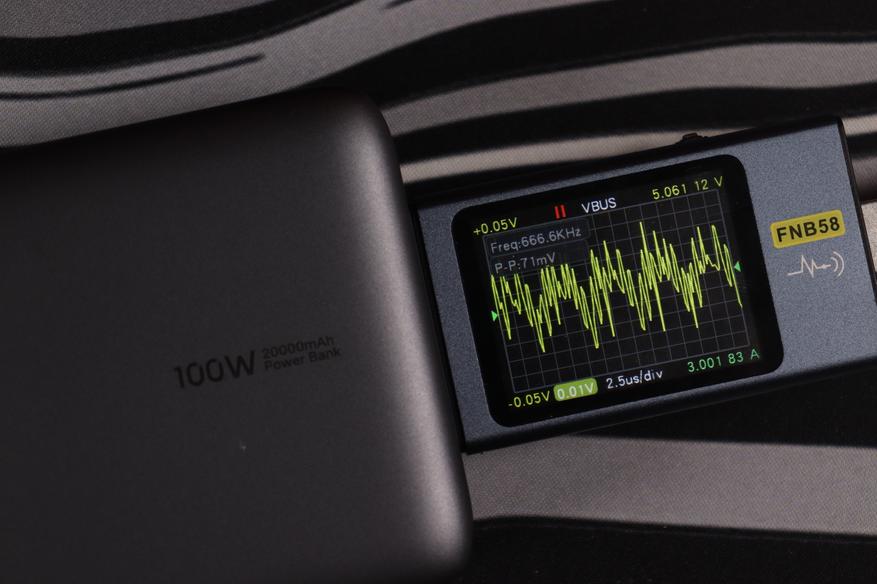 Но что касается выходных параметров в режиме работы 5В 3А — аккумулятор показывает безупречную работу — защита срабатывает корректно, запас по мощности есть, пульсации слегка превышают 1% от номинального напряжения.