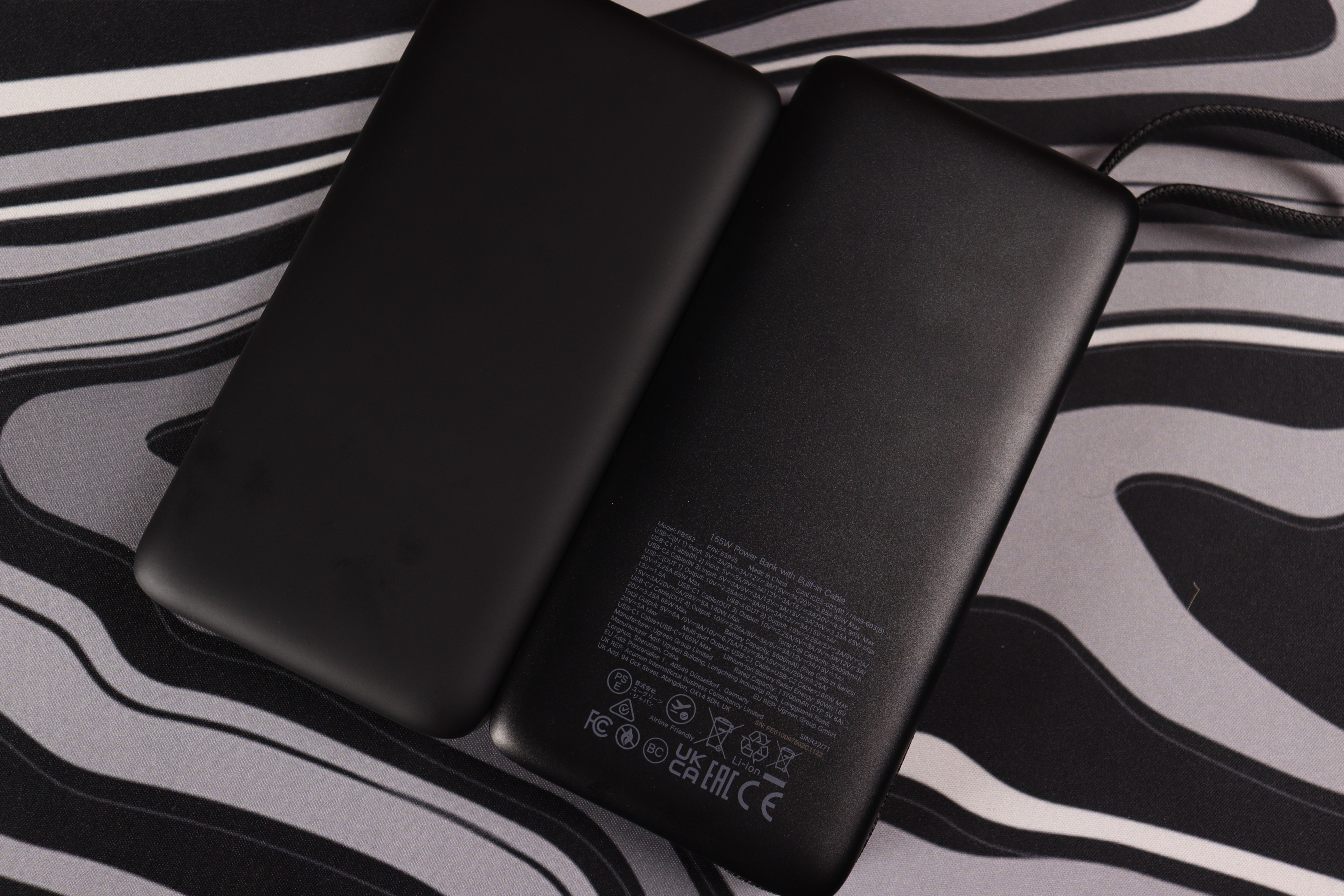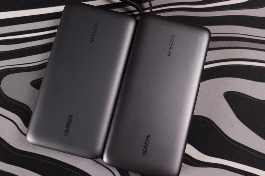 Ну и сравнение в габаритных размерах со старшей версией на 165Вт, 25000мАч и 2 встроенным кабелями — Ugreen PB552