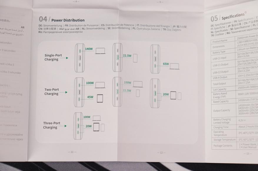 Внешний аккумулятор PB205 поставляется в упаковке с многослойной полиграфией, демонстрирующей ключевые технические характеристики на нескольких языках. Производитель акцентирует внимание на поддержке протокола PоwerDelivery 3.1 с напряжением 28В.