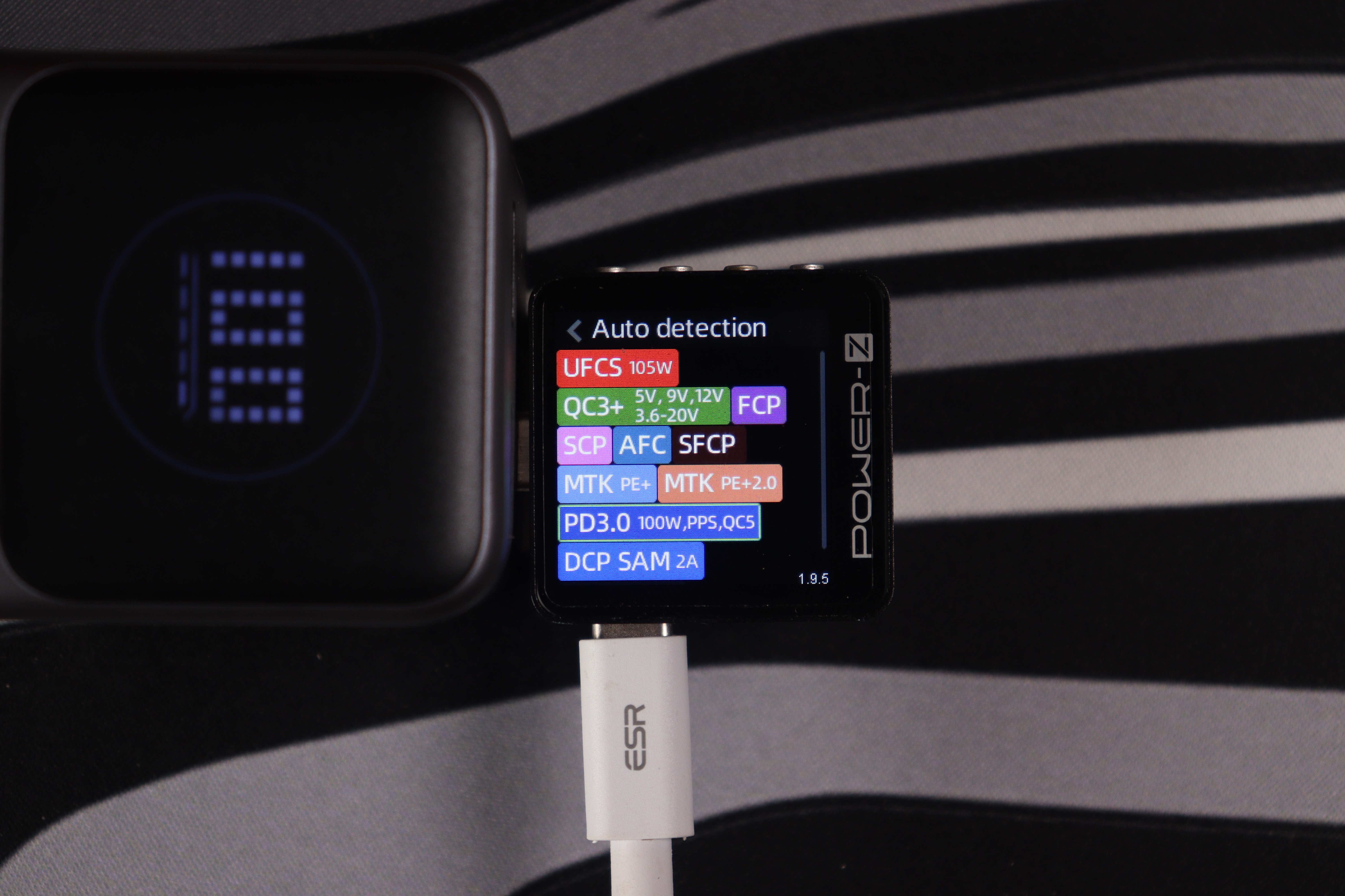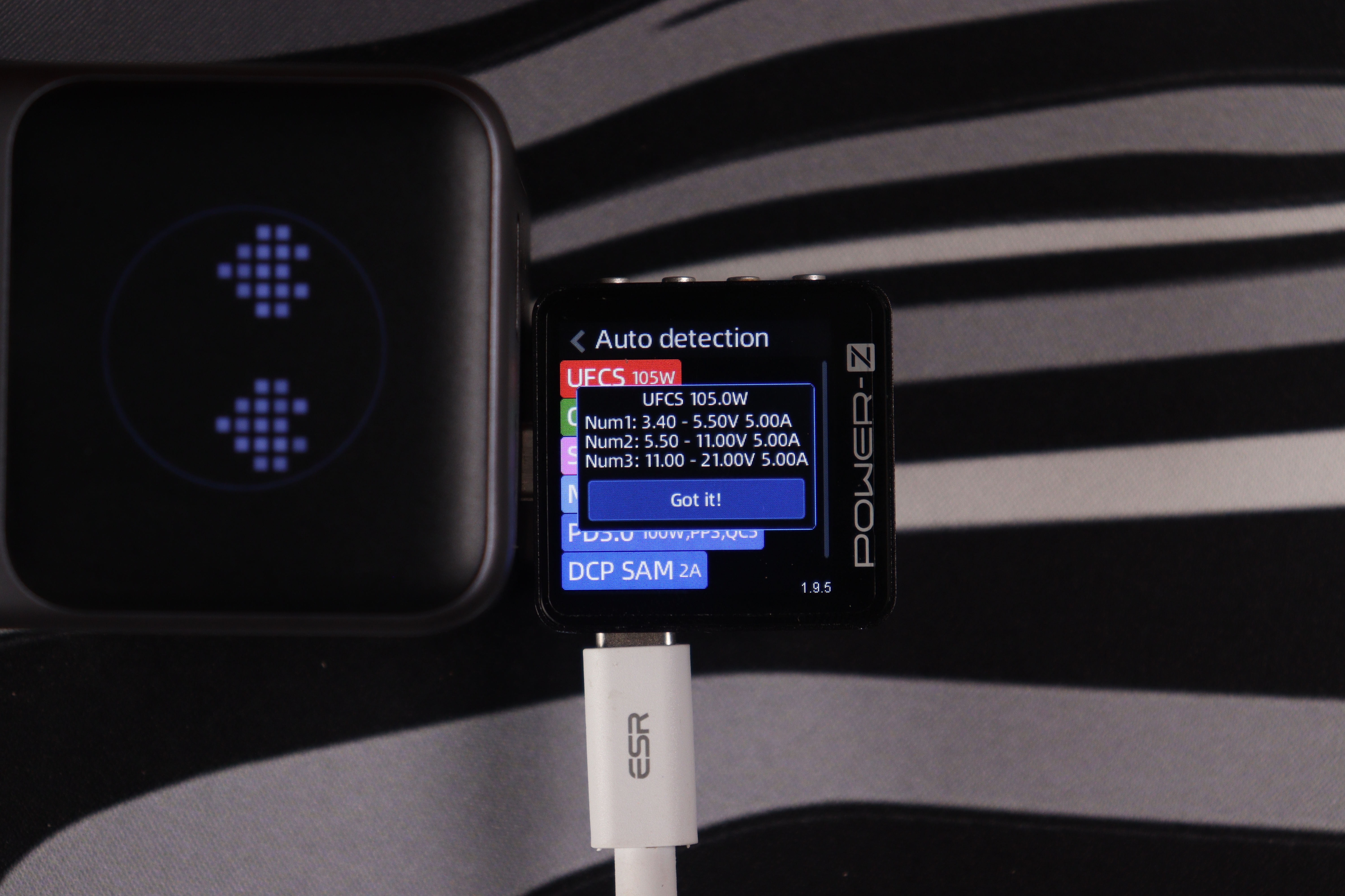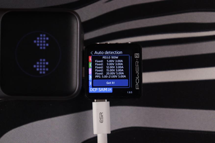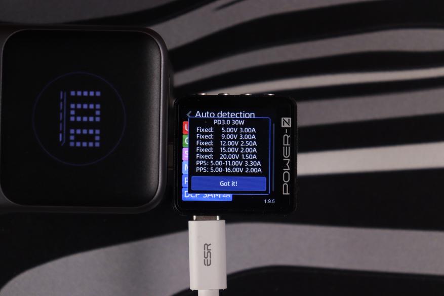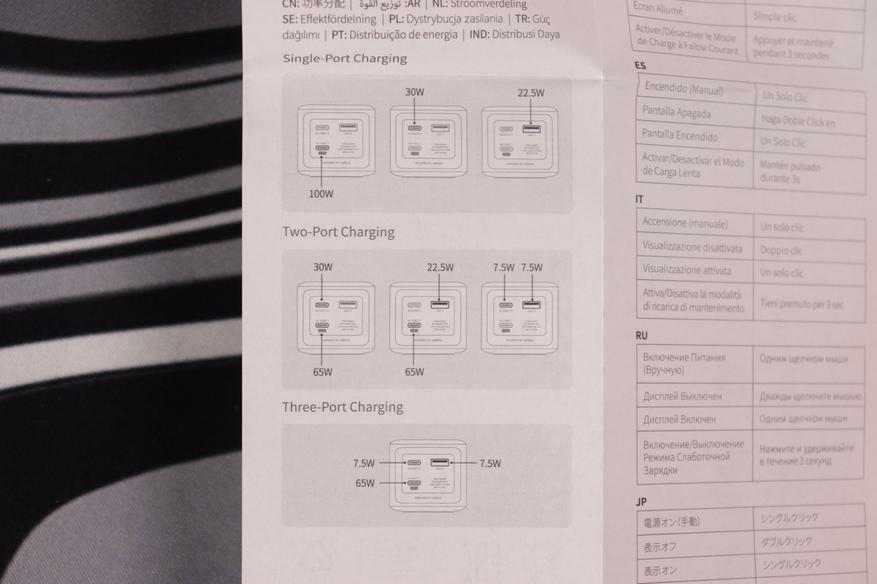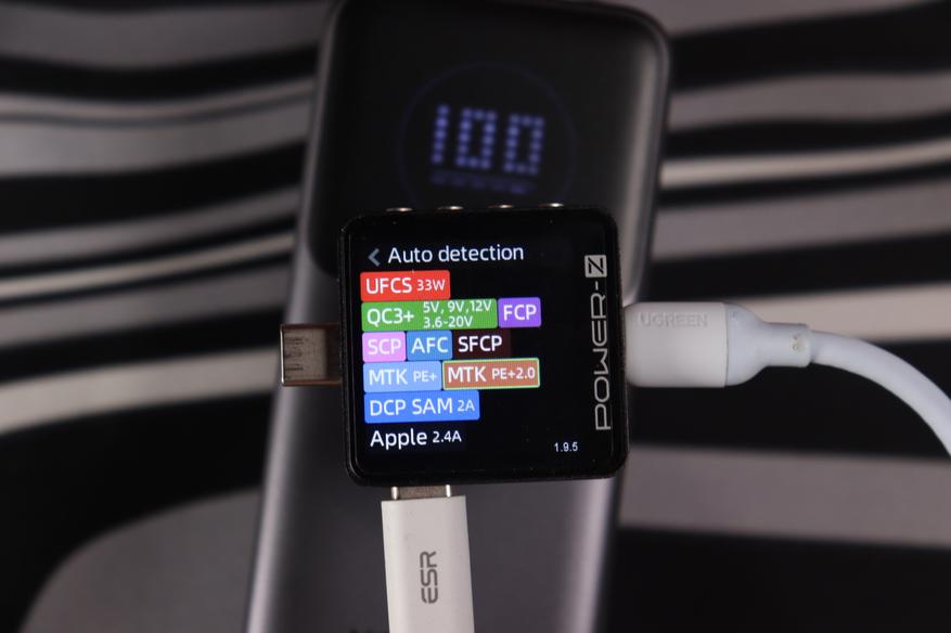 Энергобанк поддерживает современные протоколы быстрой зарядки, включая доминирующий в современных гаджетах PоwerDelivery 3.0 с PPS расширениями, а также UFСS — до 105Вт, что встретить очень редко. Напряжения ограничены следующими параметрами: Type-C1/С2 — 20В, Type-A — 12В.
