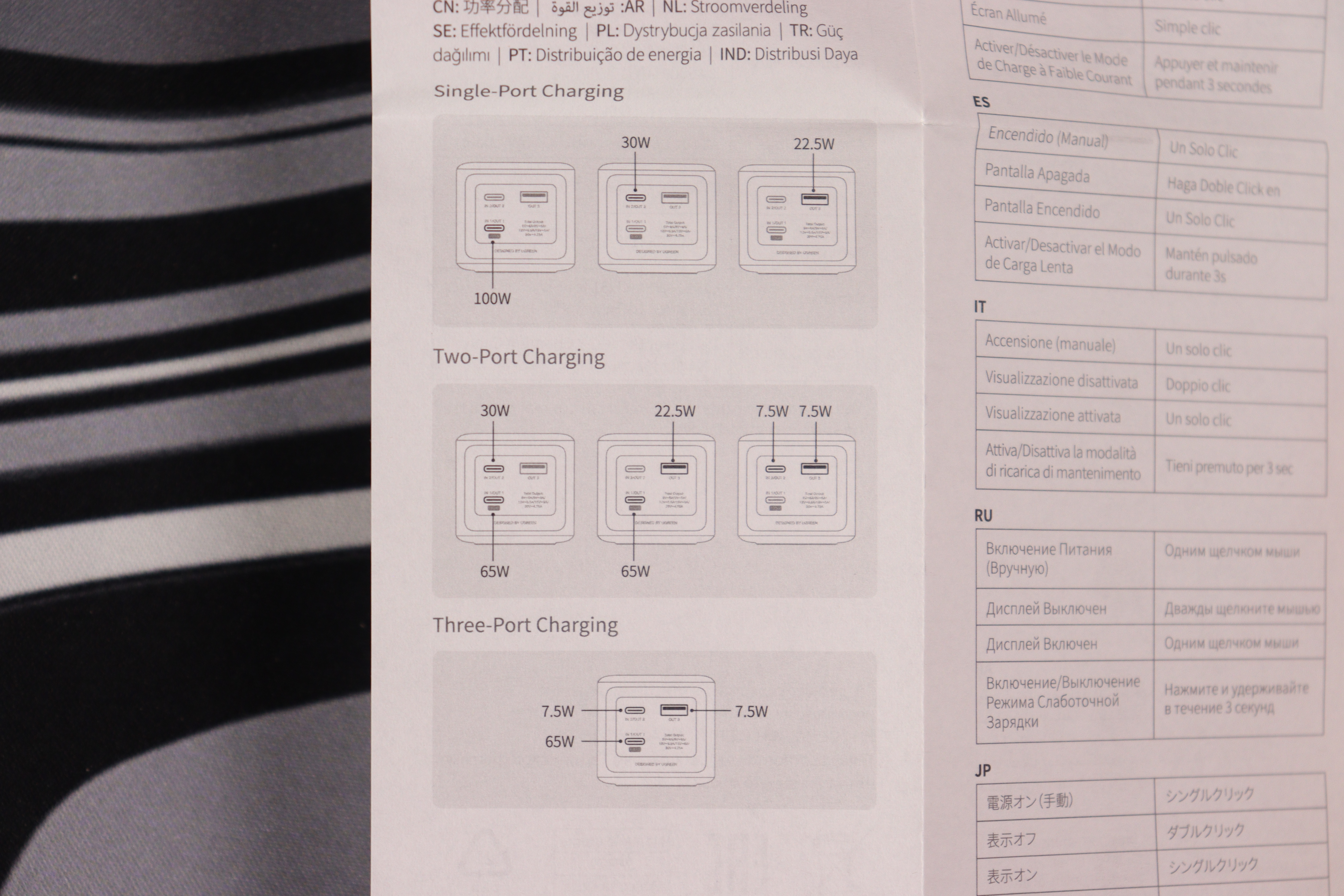 Одновременная подзарядка аккумулятора и энергоснабжение потребителя успешно реализована и позволяет использовать изделие в качестве концентратора. В активном режиме батарея может принимать до 65Вт через основной разъём и одновременно распределять до 30Вт между подключёнными устройствами, сохраняя при этом режим 20В.
