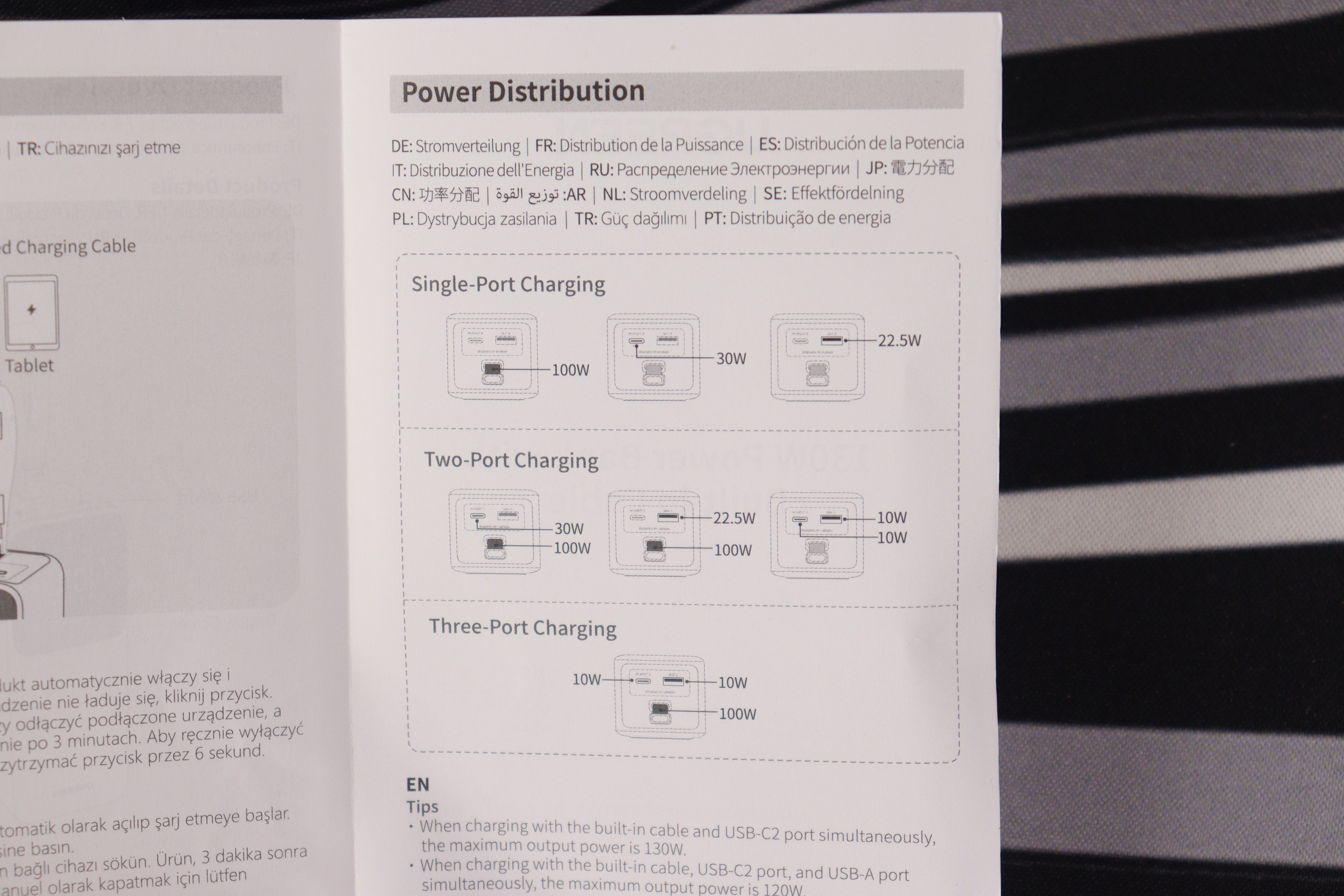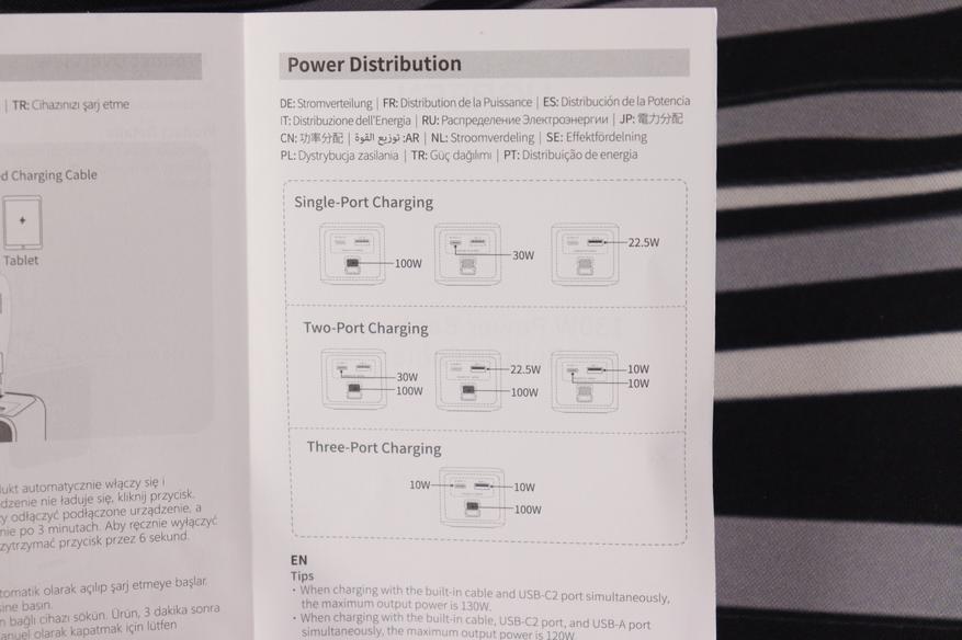 Суммарная выходная мощность достигает 130Вт при оптимальном распределении нагрузки между портами.