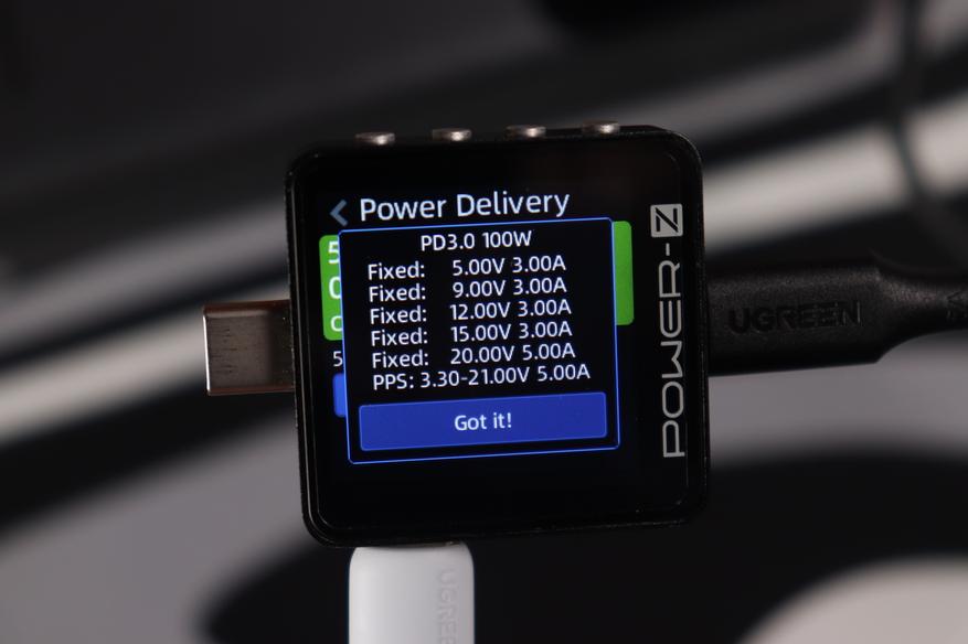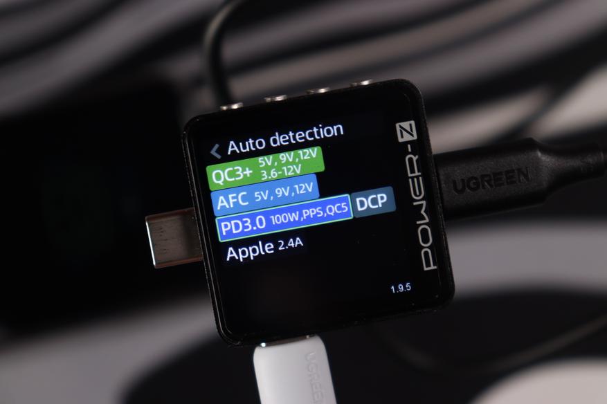 Устройство поддерживает все современные протоколы быстрой зарядки: PD3.1, QС4+/3.0/2.0, AFC, FCP/SCP, Apple 5V/2.4A. USB-A поддерживает унифицированный протокол для китайских смартфонов — UFCS мощностью до 33 Вт. PPS на Type-С поддерживается в обоих случаях и максимальное напряжение составляет 21В, ток до 5А