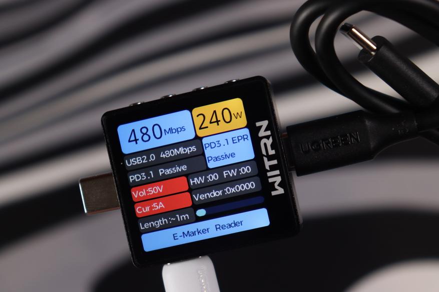 Кабель заслуживает отдельного упоминания — он способен передавать высокую (до 240 вт, режим работы 50В 5А), что важно для реализации заявленных характеристик устройства.