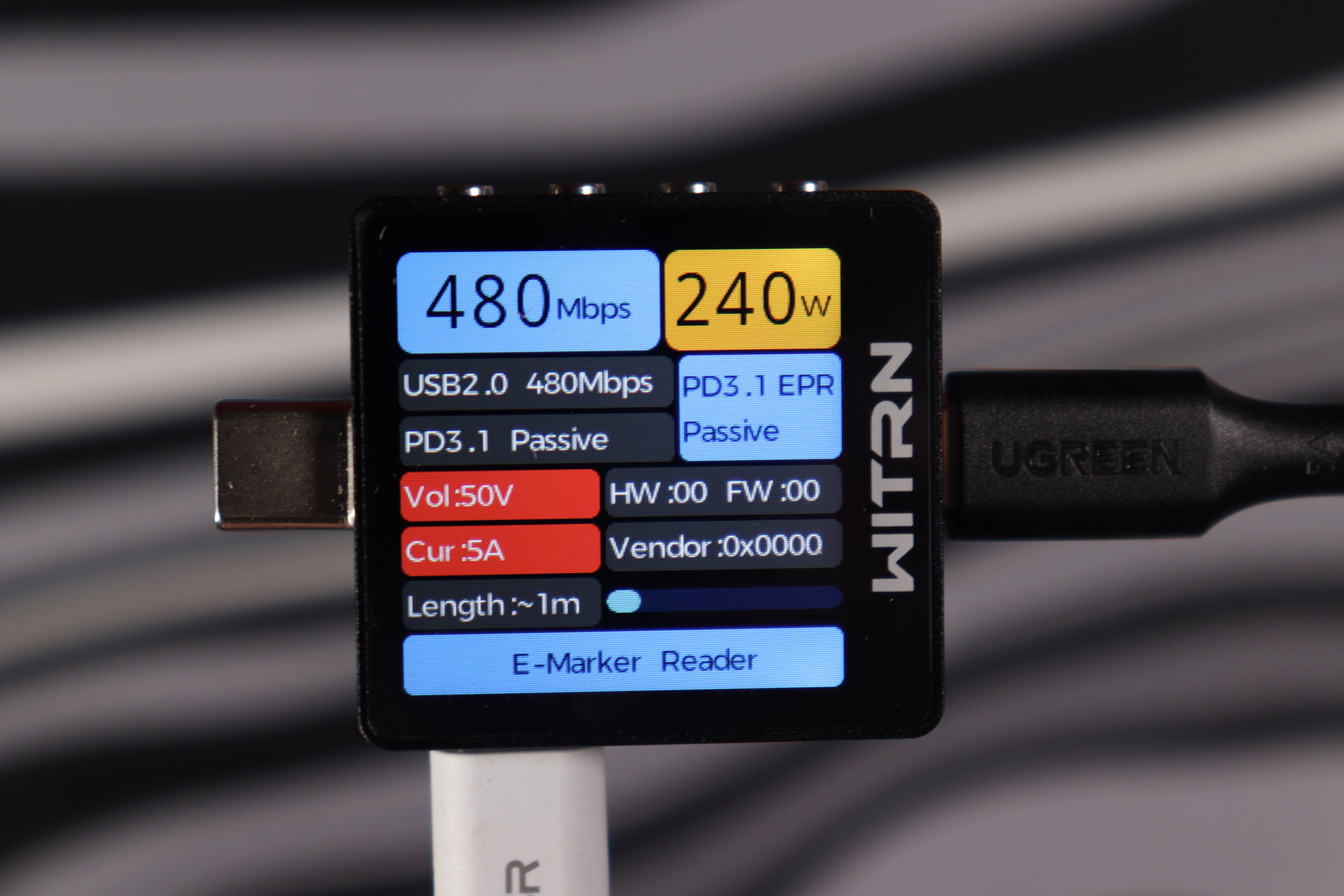 Провод сертифицирован по PD 3.1 и способен передавать всю мощность даже при интенсивной нагрузке.