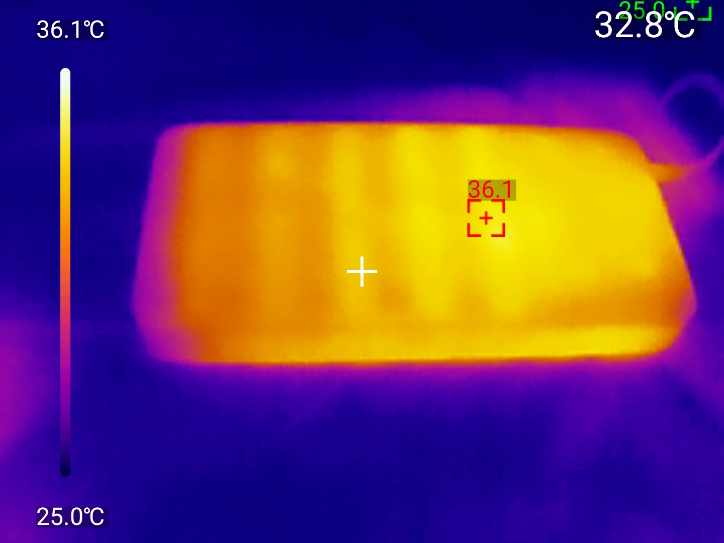 Максимальное значение температуры тепловизором UNI-T UTI 260M было зафиксировано на уровне 36°C
