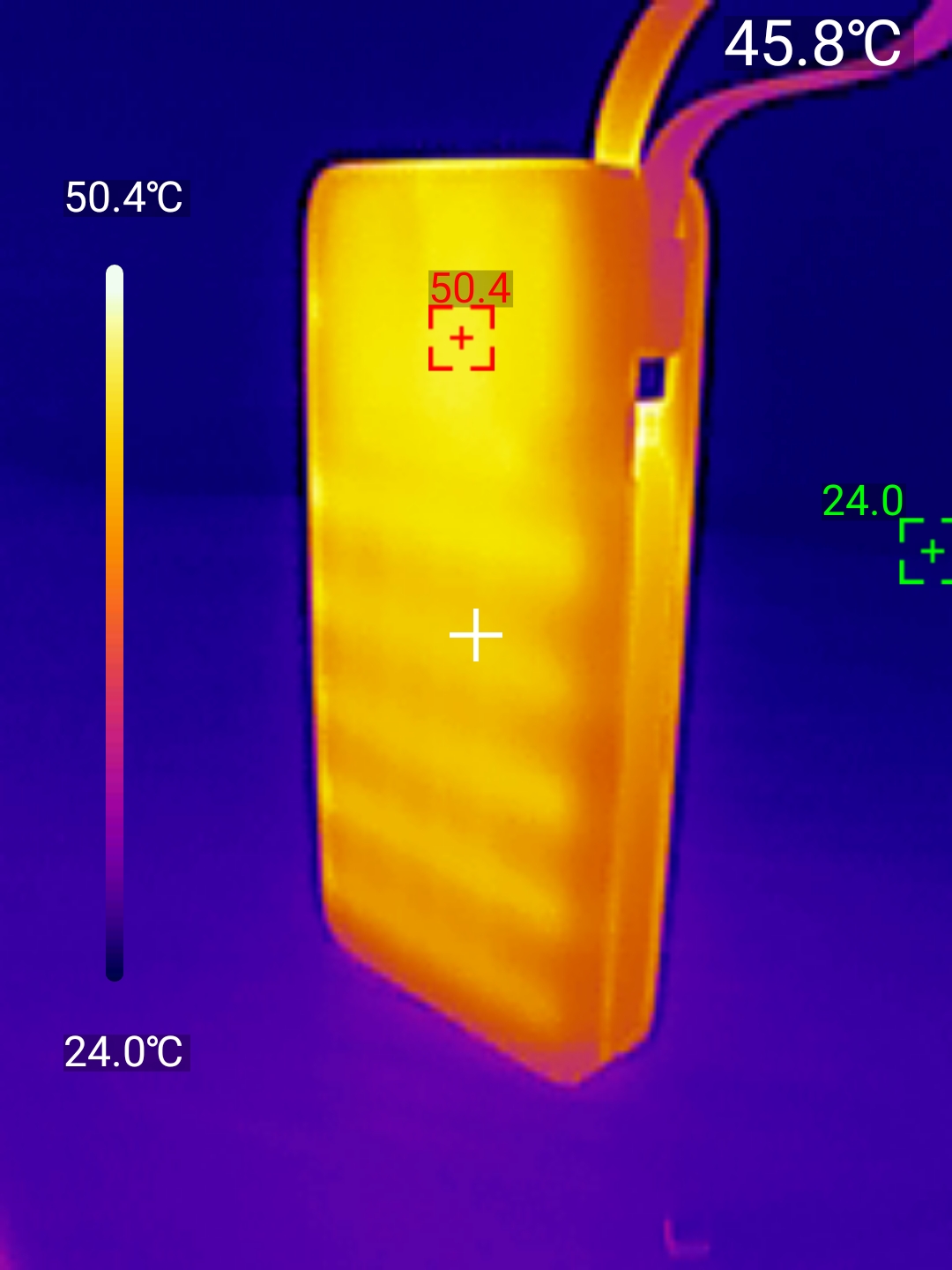 При испытании на максимальной мощности в 140 Вт аккумулятор смог стабильно проработать около 11 минут. Затем устройство автоматически перешло в режим 20В при токе 5А и ещё примерно 15 минут продолжало функционировать, после чего сработала защита, но через какое-то время контроллер восстанавливал доступ на режим работы 100Вт. Максимальный нагрев корпуса в процессе составил 50,4 °C. В сумме за весь цикл тестирования он отдал 73,55Втч.