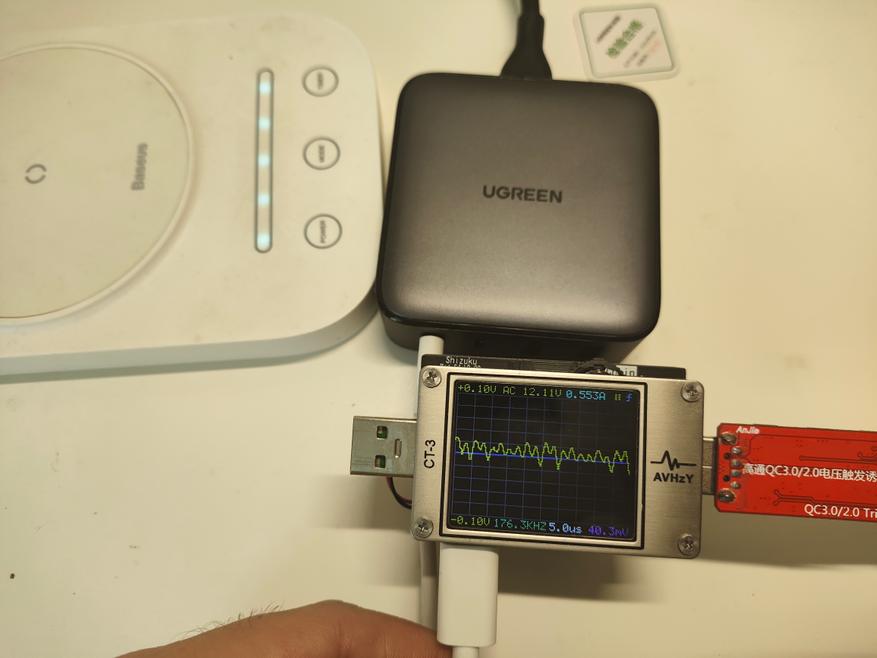 Пульсации для большинства режимов любого из выходов не превышают 0,2-0,3 % от соответствующего напряжения. Данная характеристика выводит зарядное устройство Ugreen в лидеры аналогичных моделей на транзисторах на нитриде галлия (GaN).