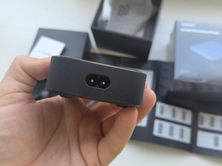 На следующих фотографиях модель показана со всех сторон. На задней стенке видны силиконовые ножки. Мне они напомнили аналогичные у внешнего аккумулятора Baseus на 100Вт. В тесте на нагрев именно со стороны задней стенке нагрев больше, поэтому ножки немного помогают его отводить. Лучшим решением будет поставить CD327 боком.