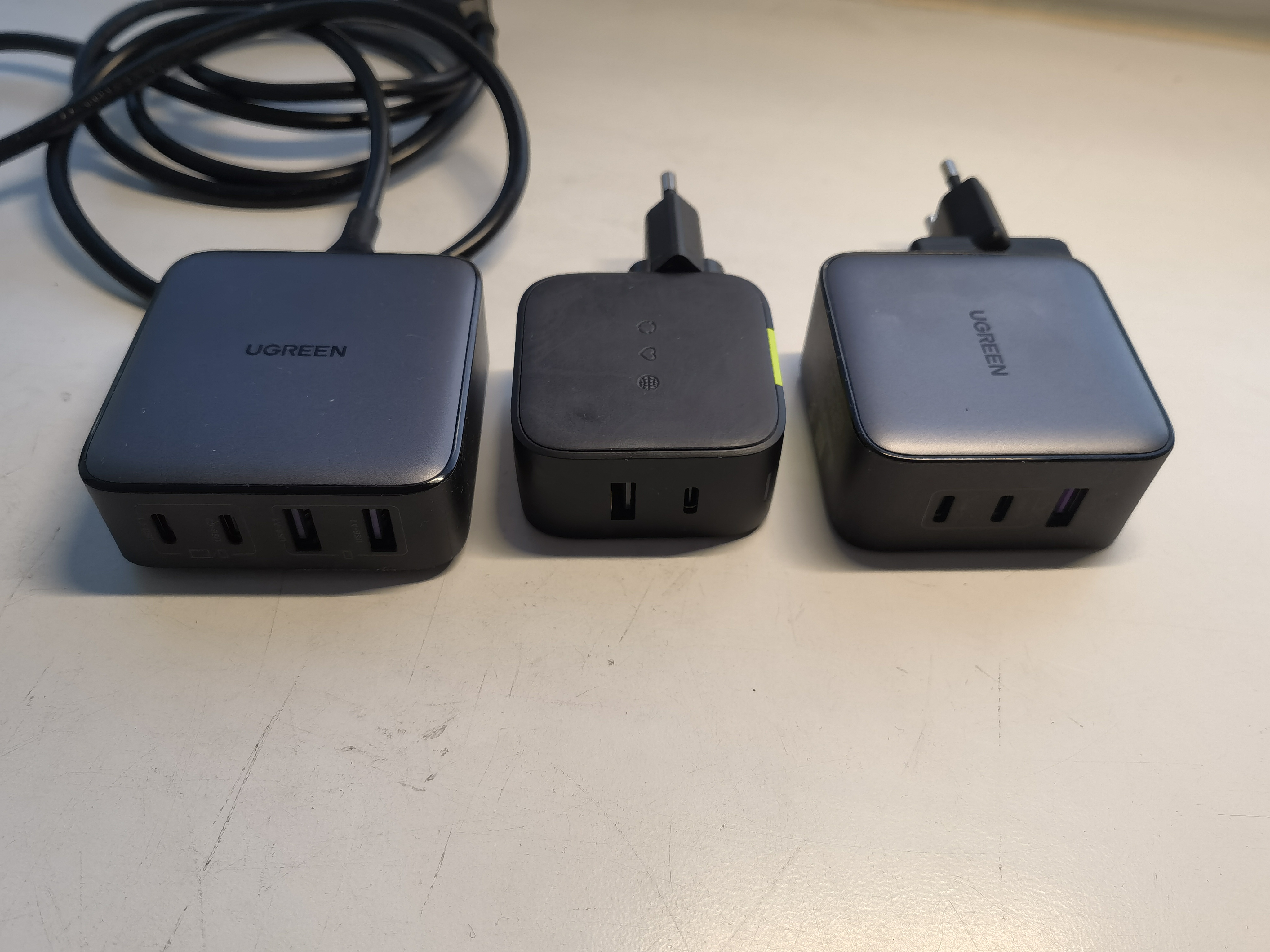 Так что сменный провод — это как раз офигенное решение, все эти кубики прямо в розетку, если они не совсем крохотные (на 1 порт, как к телефонам дают), это очень-очень плохо. А сменный провод — очень-очень хорошо.