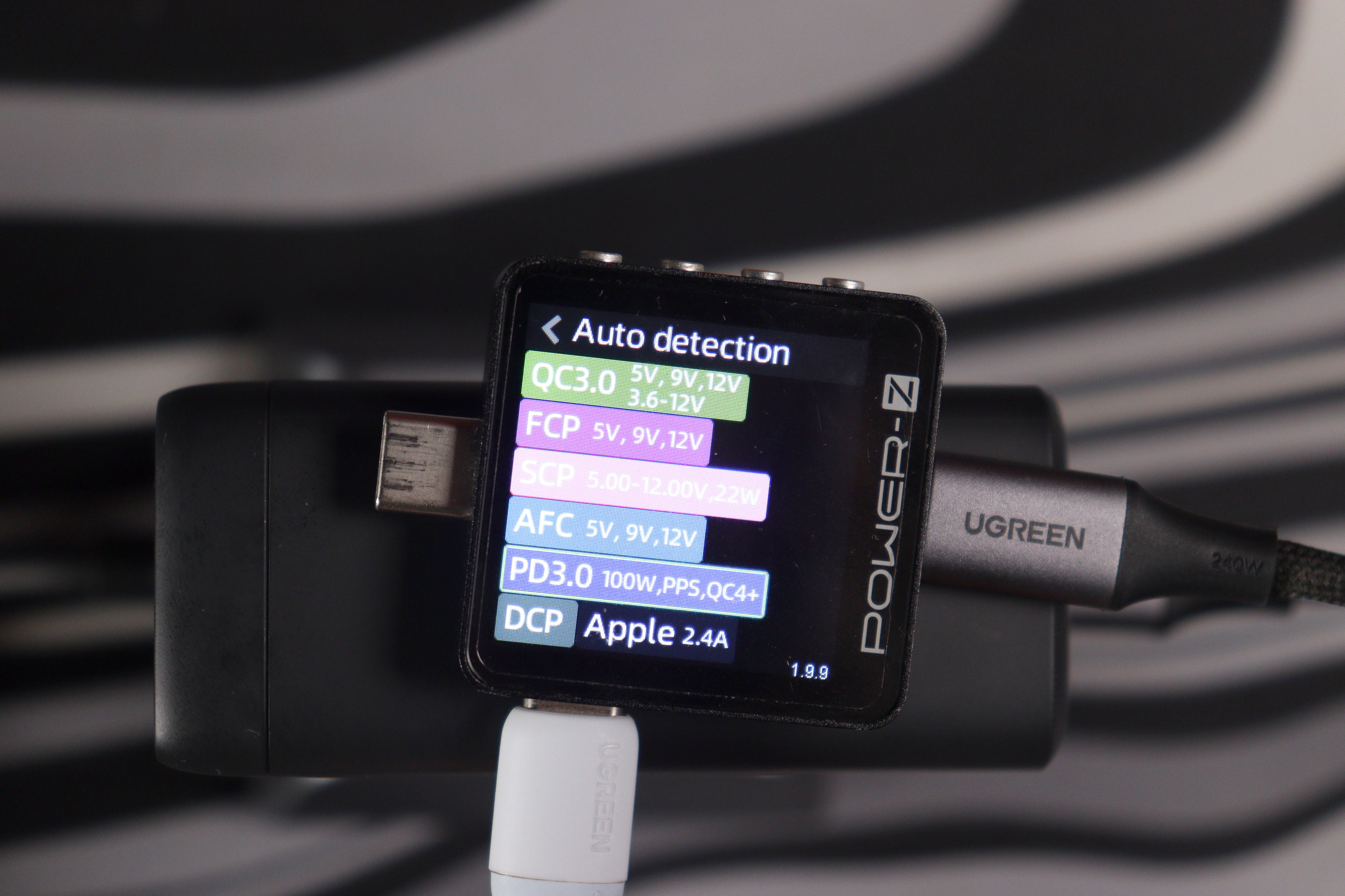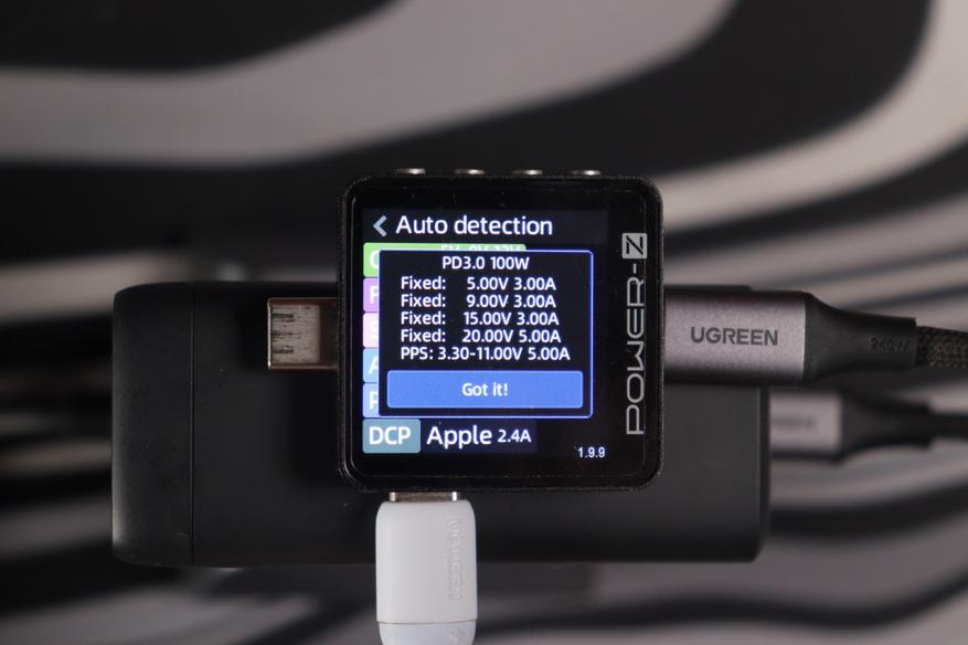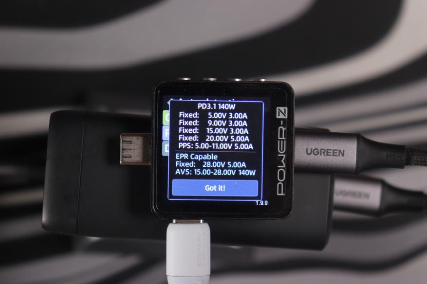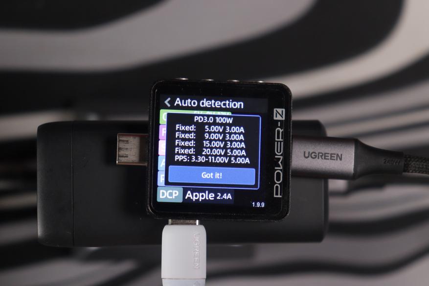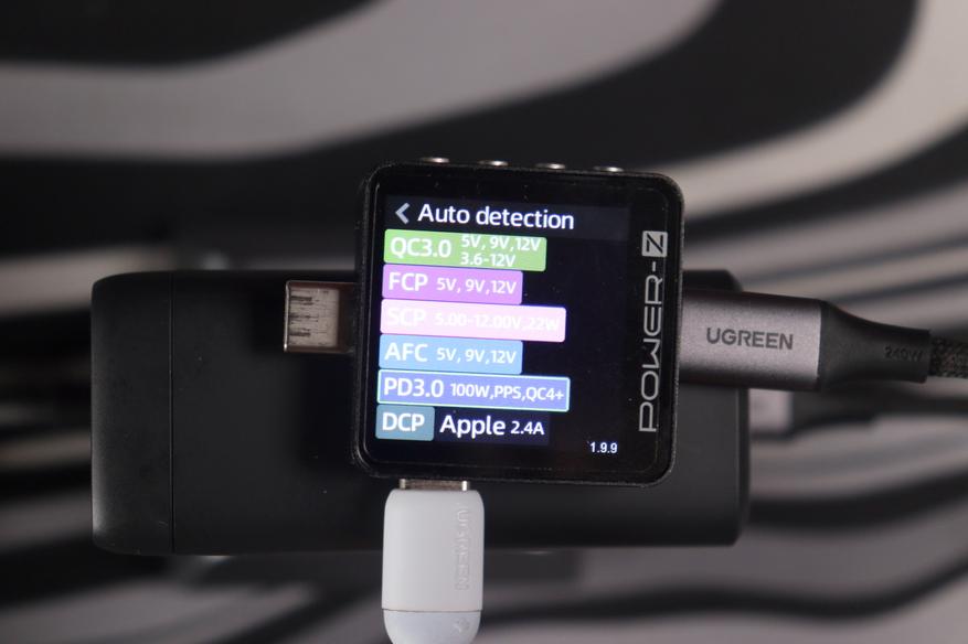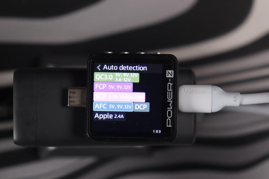 Проверка с помощью POWER-Z выявила обширный перечень совместимых стандартов зарядки. В частности, верхний разъем формата USB-C обладает следующими характеристиками: