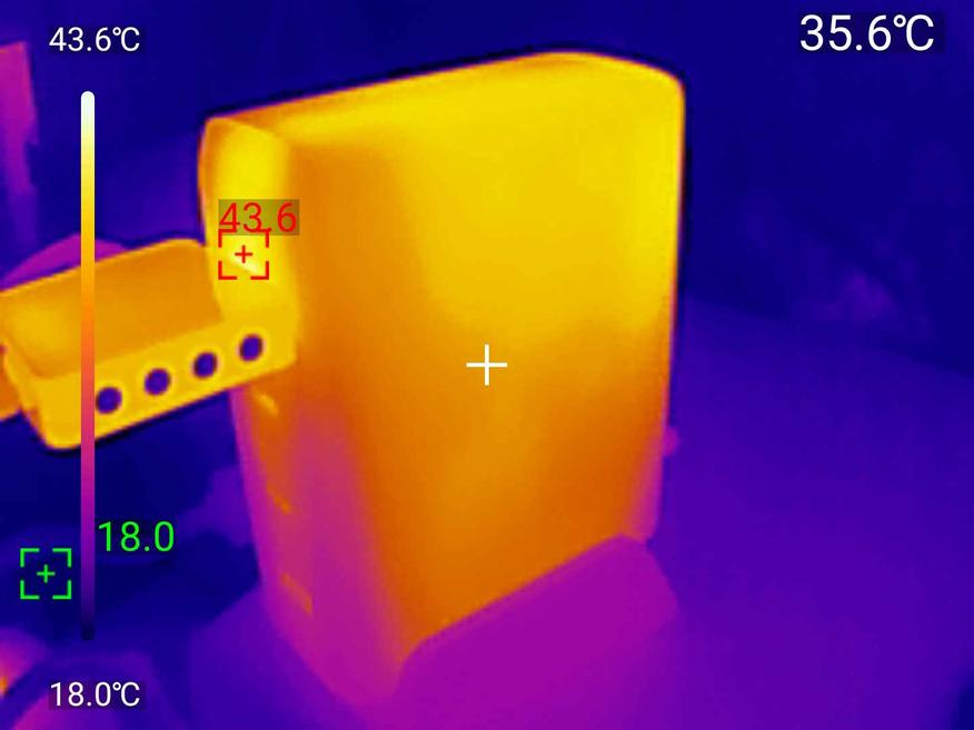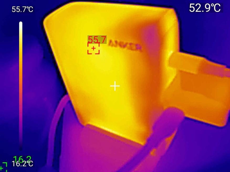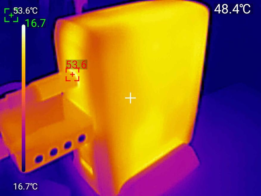 Что важно: нагрев равномерный, без локальных горячих пятен. Это значит, что тепло распределяется по всему корпусу, а не концентрируется в одной точке. При касании зарядка ощущается тёплой, но не обжигающей — можно спокойно брать в руки даже после часа работы на максимуме.