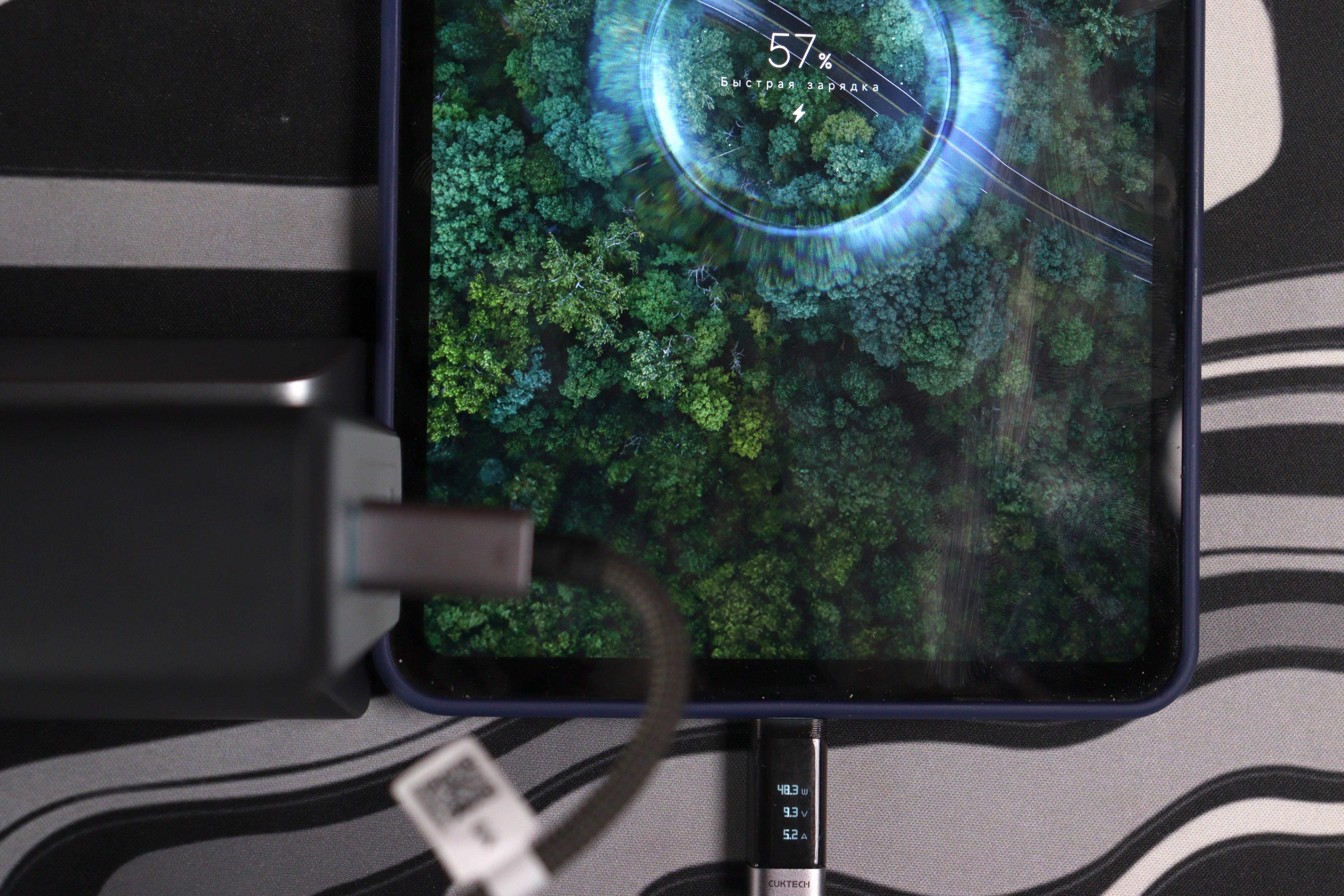 Что касается реального использования с устройствами Xiaomi, зарядное будет отдавать максимум — планшет через кабель с поддержкой передачи 6А заряжался на мощности 50Вт (что является максимумом через отдельные зарядные устройства)