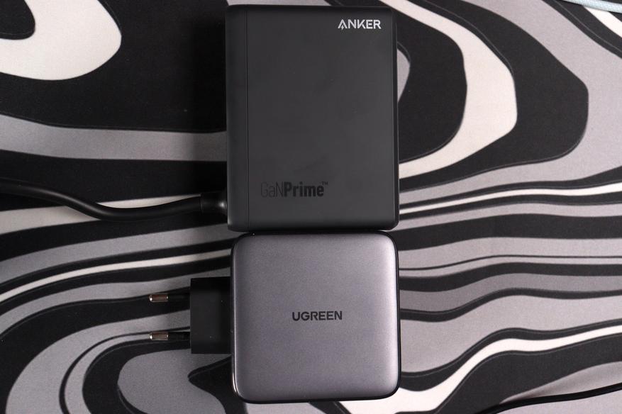 Габаритные размеры Anker Prime 240W больше, чем у флагманской зарядки Ugreen на 200W. Ugreen компактнее примерно на 15-20% в объёме. Качество сборки сопоставимо, но Anker выглядит чуть более премиально за счёт более приятного (но вероятно менее устойчивого к загрязнению) пластика.
