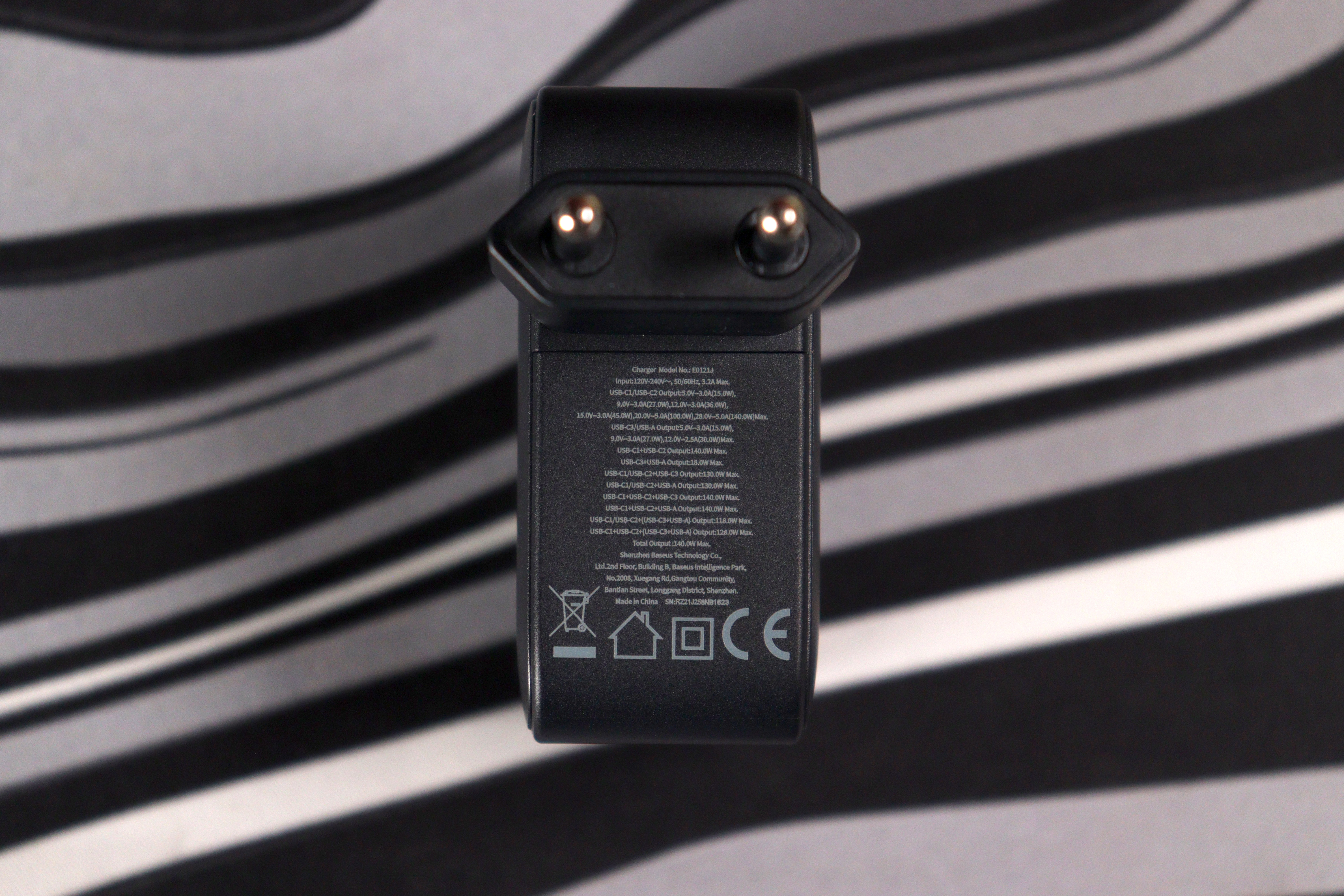 Качество сборки на уровне: люфтов нет, зазоры минимальные, пластик приятный на ощупь. На боковой грани выбита маркировка с основными характеристиками и сертификатами. Надпись «140W GaN» нa верхней панели сразу дает понять, с чем имеешь дело.