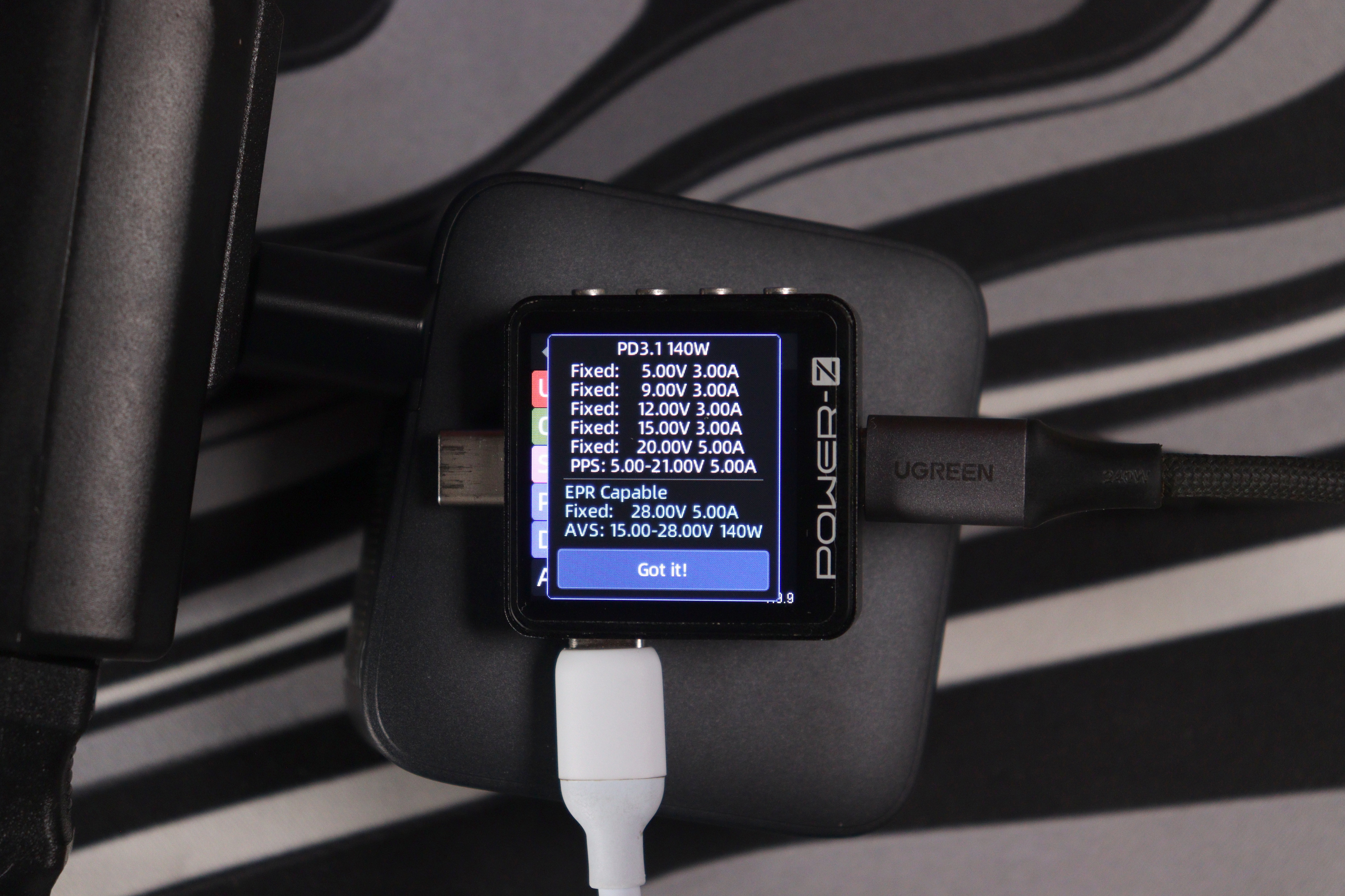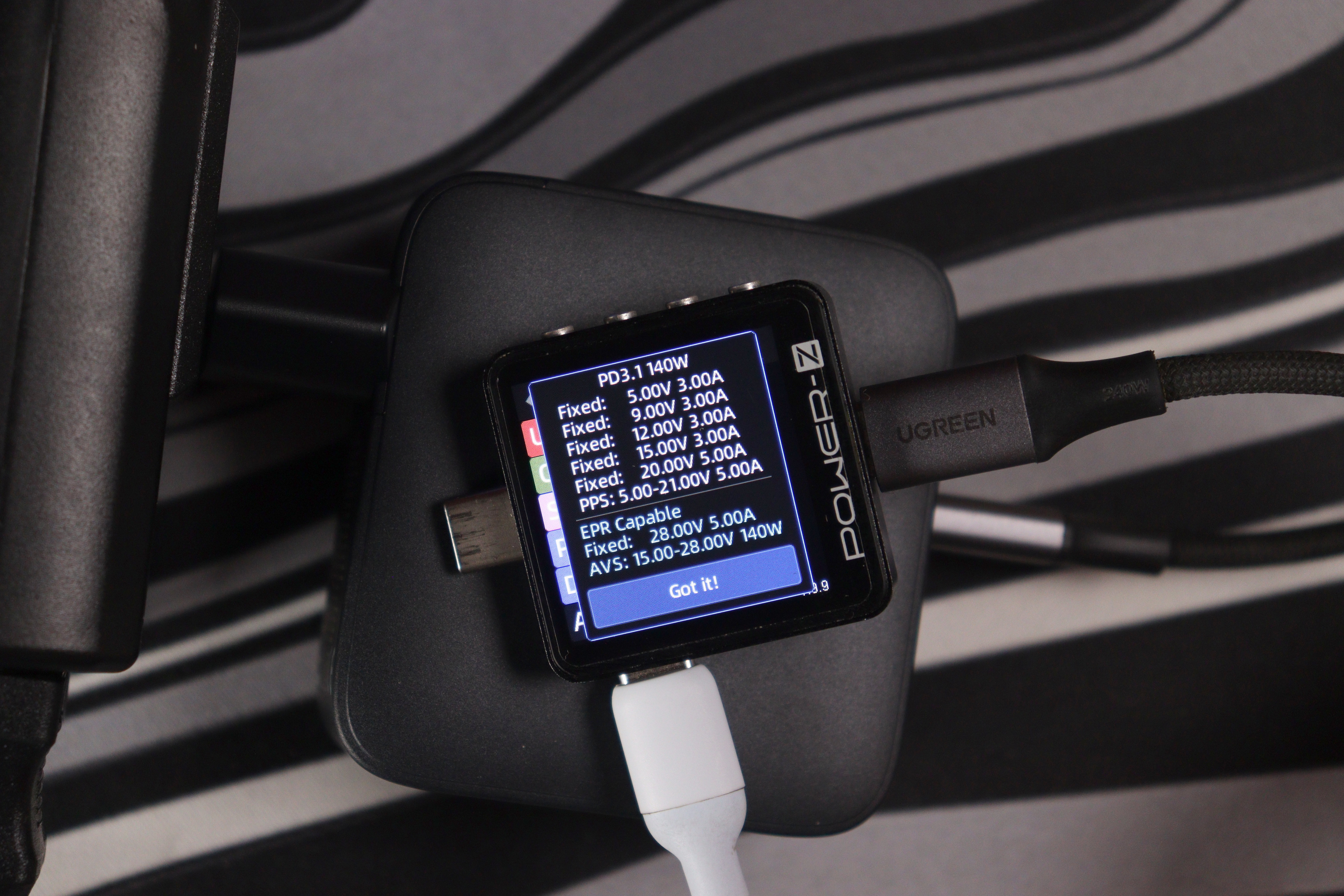 - PD 3.1 140W с полным набором профилей: 5V/3A, 9V/3A, 12V/3A, 15V/3A, 20V/5A