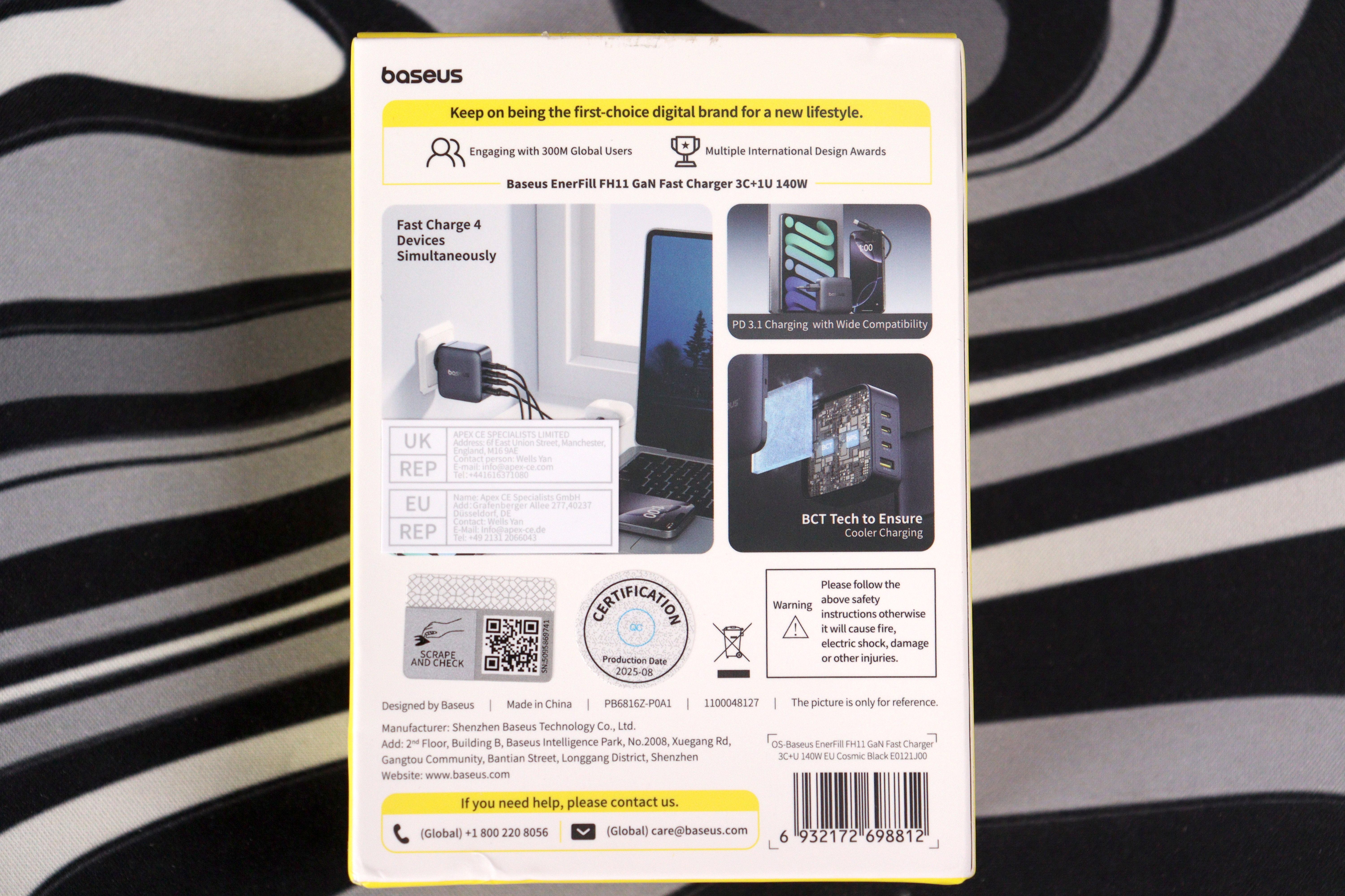 В коробке минимум: сама зарядка, инструкция на нескольких языках и предупреждающий вкладыш. Кабель не прилагается, что для Baseus весьма непривычно. С одной стороны, это экономия на упаковке и транспортировке, с другой — возможность выбрать кабель под свои нужды. Учитывая, что для полноценного использования 140 Вт понадобится качественный USB-С кaбель с поддержкой 5А, отсутствие его в комплекте может стать неожиданностью для покупателя.