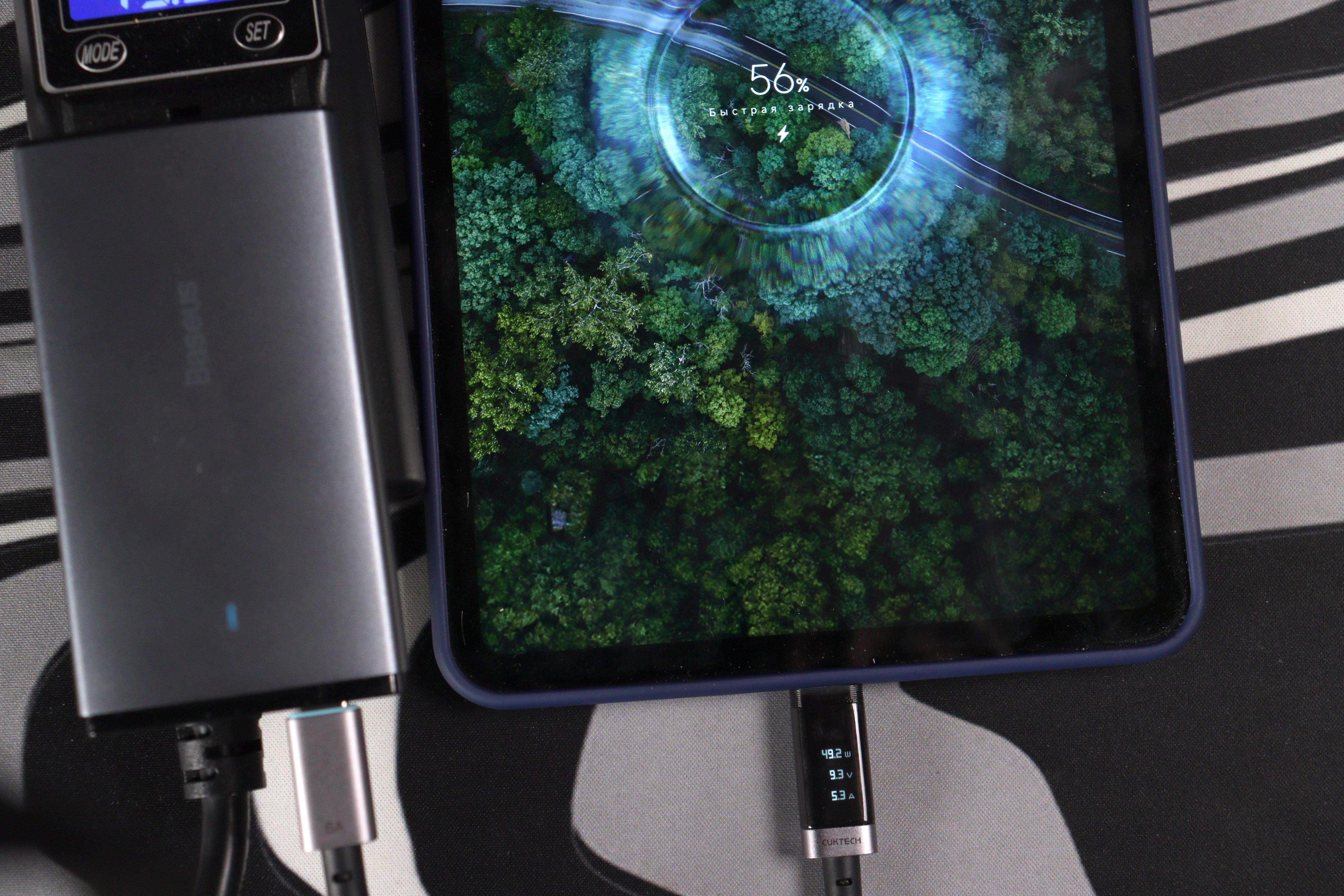 При практическом использовании с различными гаджетами никаких неполадок не возникло. Планшет Xiaomi Pad Mini принимает свою максимальную мощность зарядки в 50 Вт через кабель Cuktech No.6.