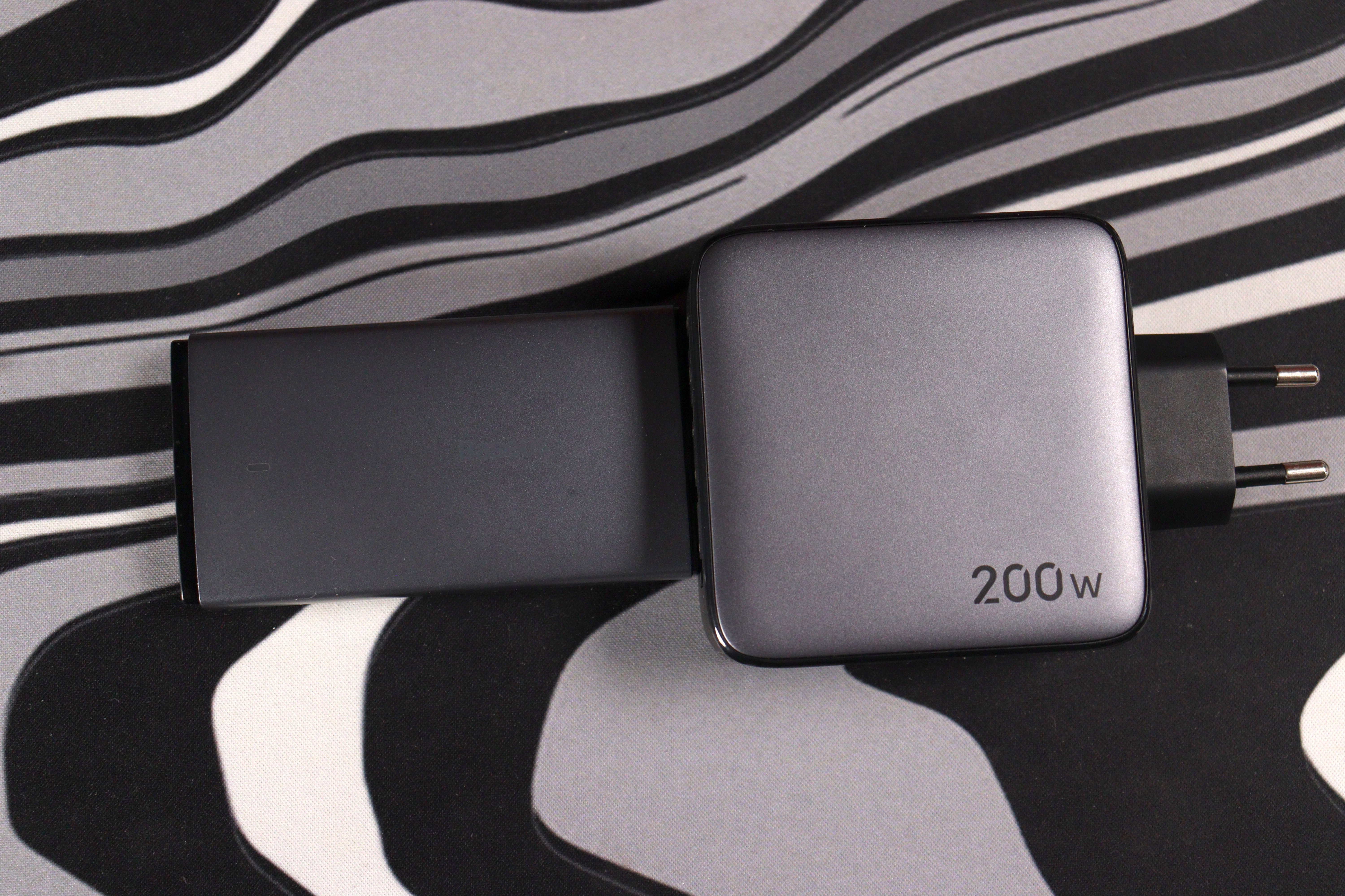 Сравнение с 200-ваттной зарядкой Ugreen показывает главное преимущество Baseus: несмотря на то, что Ugreen мощнее более чем в три раза, разница в габаритах не такая уж драматичная. Baseus заметно тоньше и вытянутее, что делает его гораздо удобнее для ношения в кармане рюкзака или даже в кармане куртки. Ugreen 200W — это всё-таки «кирпичик», который занимает ощутимо больше места.