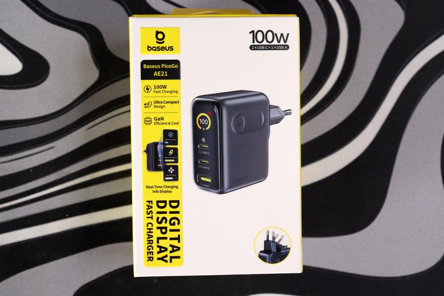 Обзор зарядного устройства Baseus PicoGo AE21 (EO121C) 100W: Компактные размеры и дисплей для мониторинга показания