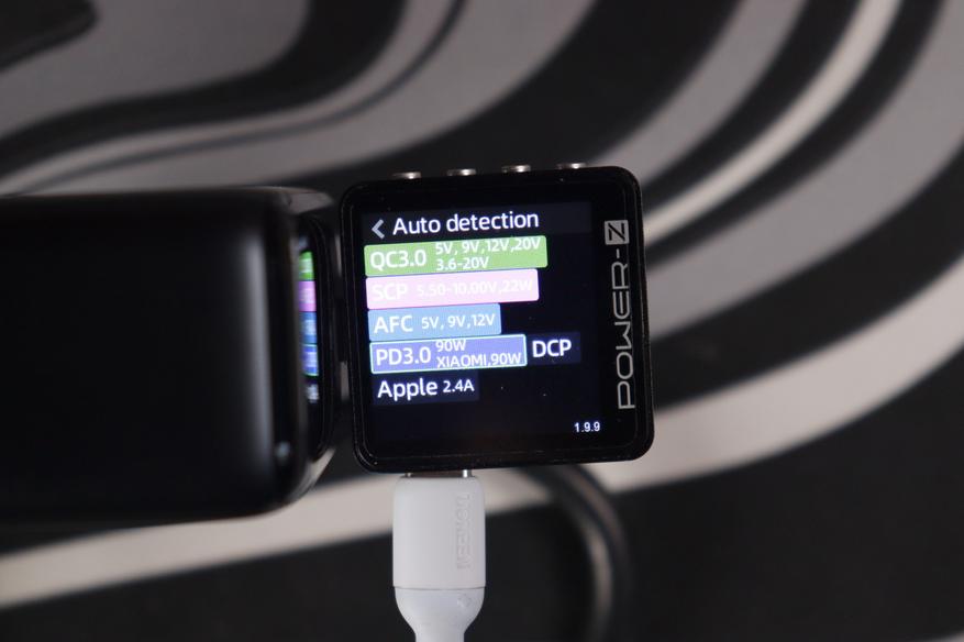 Зарядное устройство показало широкую поддержку протоколов. В тестере обнаружились: