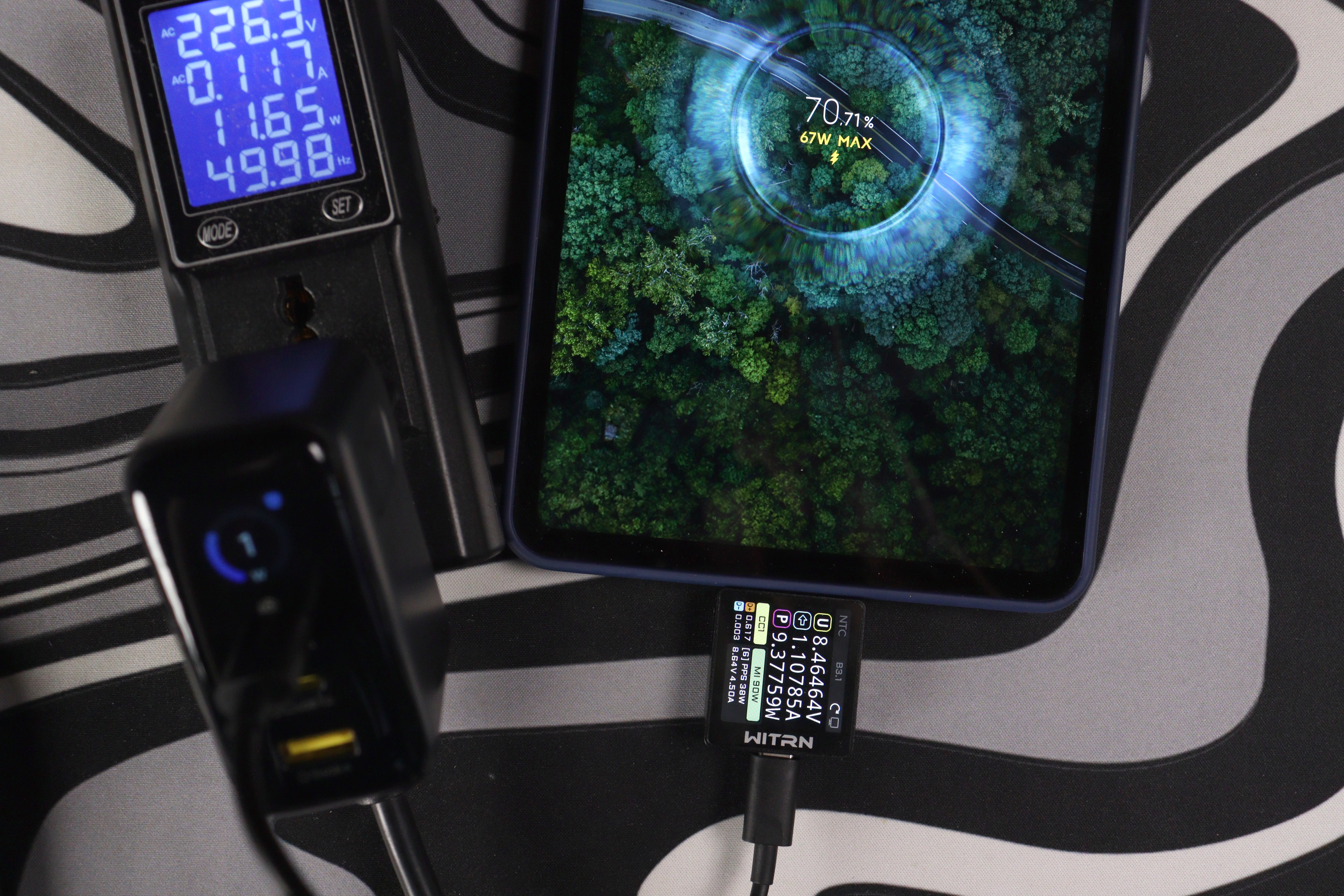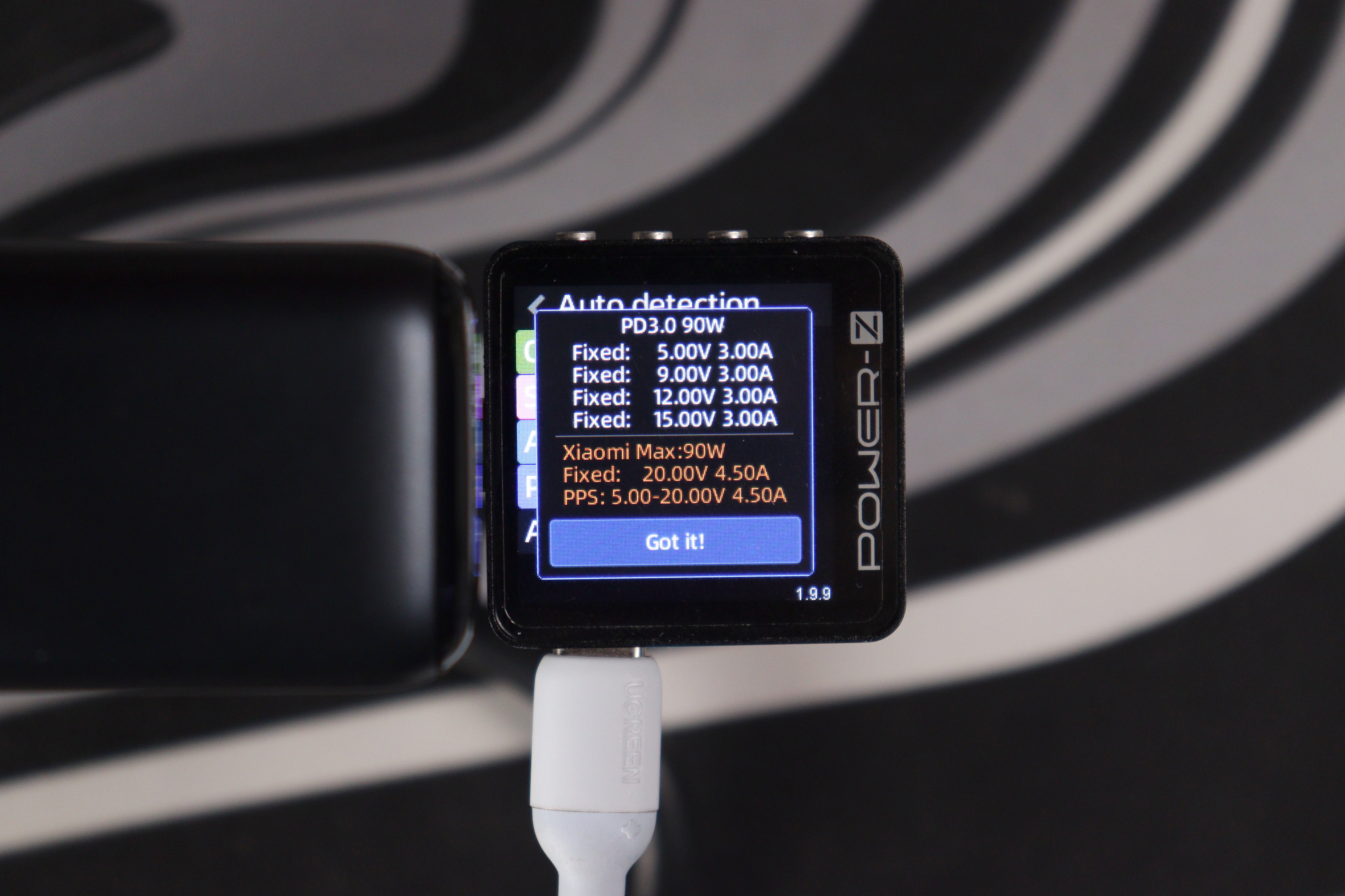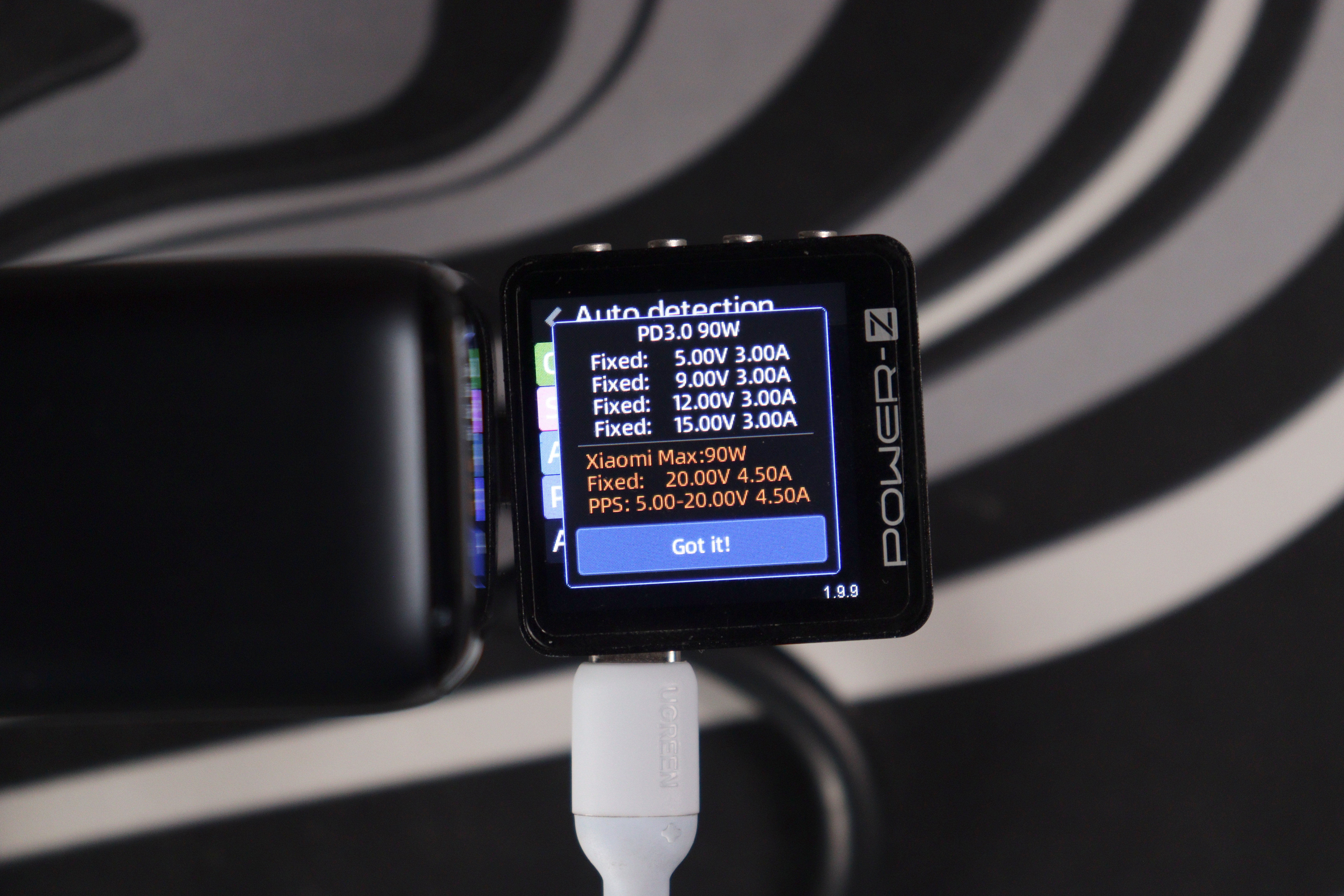 Осoбенно рaдует нaличие PPS (Programmable Power Supply) — это современный стандарт, который позволяет устройству самостоятельно регулировать напряжение в процессе зарядки для максимальной эффективности. Поддержка Xiaomi Turbo Charge на 90W (хотя реально до 67W на практике) делает зарядное отличным выбором для владельцев смартфонов этого бренда. Планшет Xiaomi Pad Mini подтверждает наличие фирменного протокола и заряжается со своей фирменной анимацией.