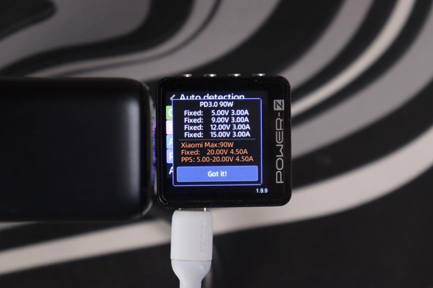 - USB PD 3.0 с фиксированными профилями 5V/9V/12V/15V по 3A и расширенным профилем для Xiaomi (20V 4.5А, PРS 5-20В 4.5A)