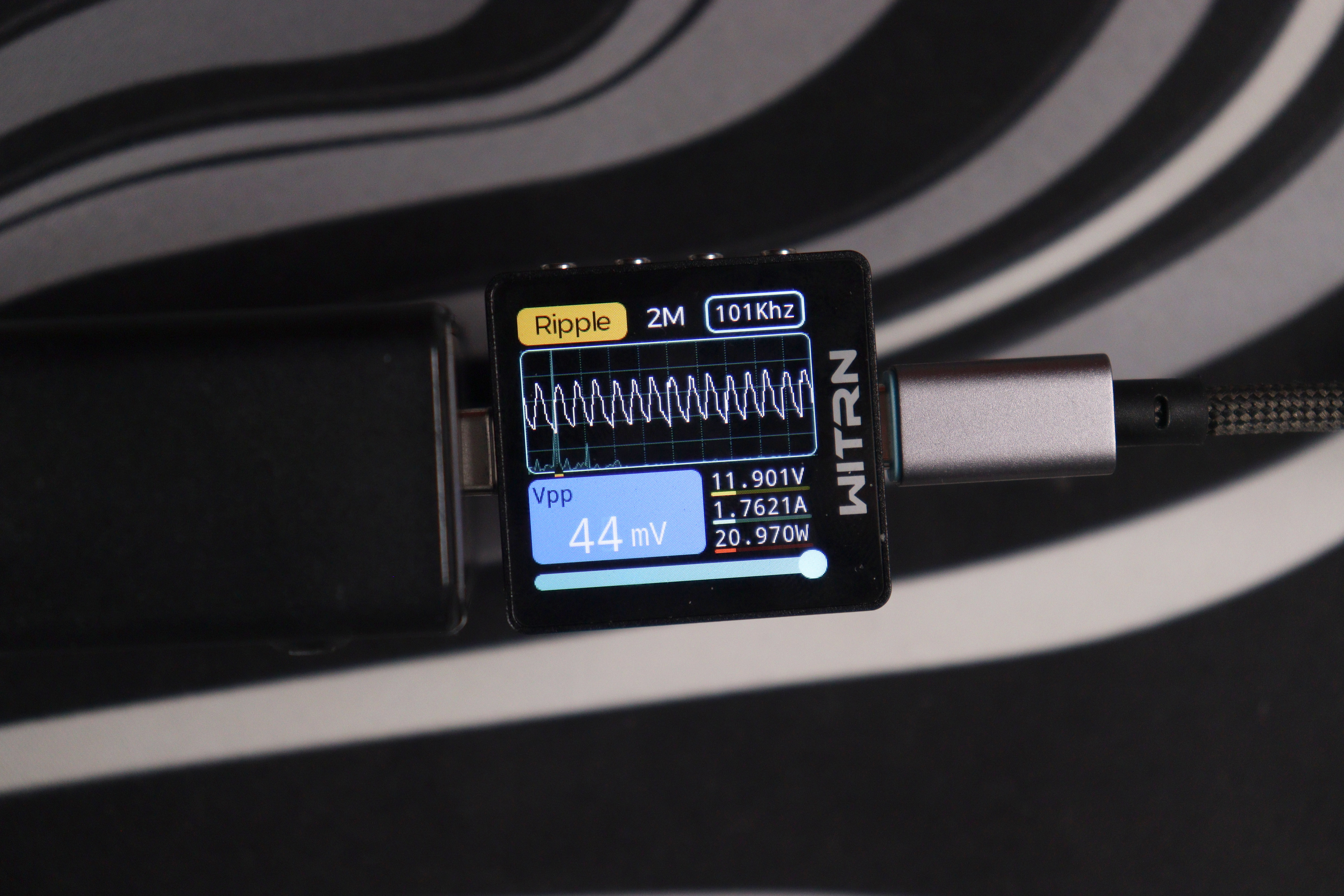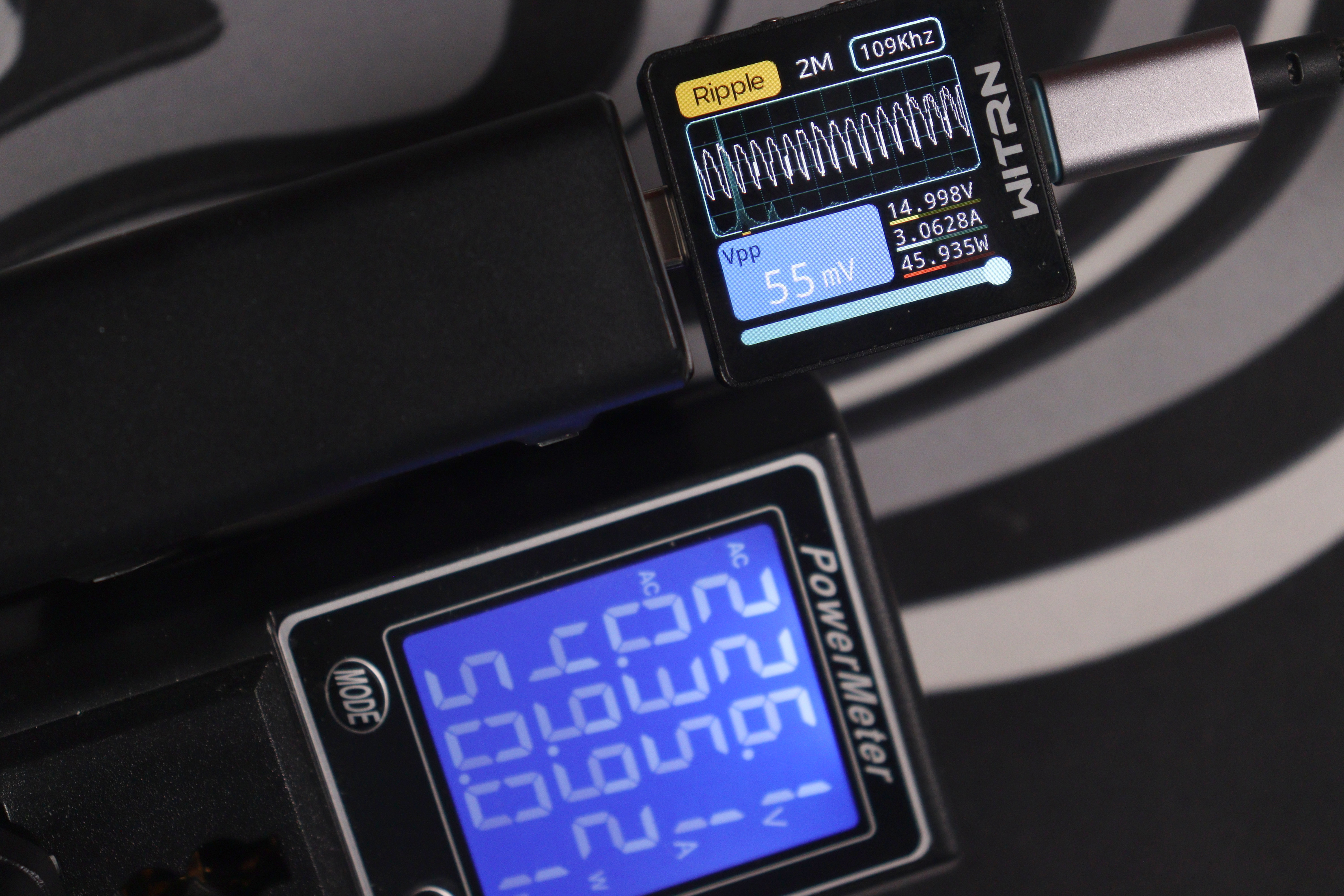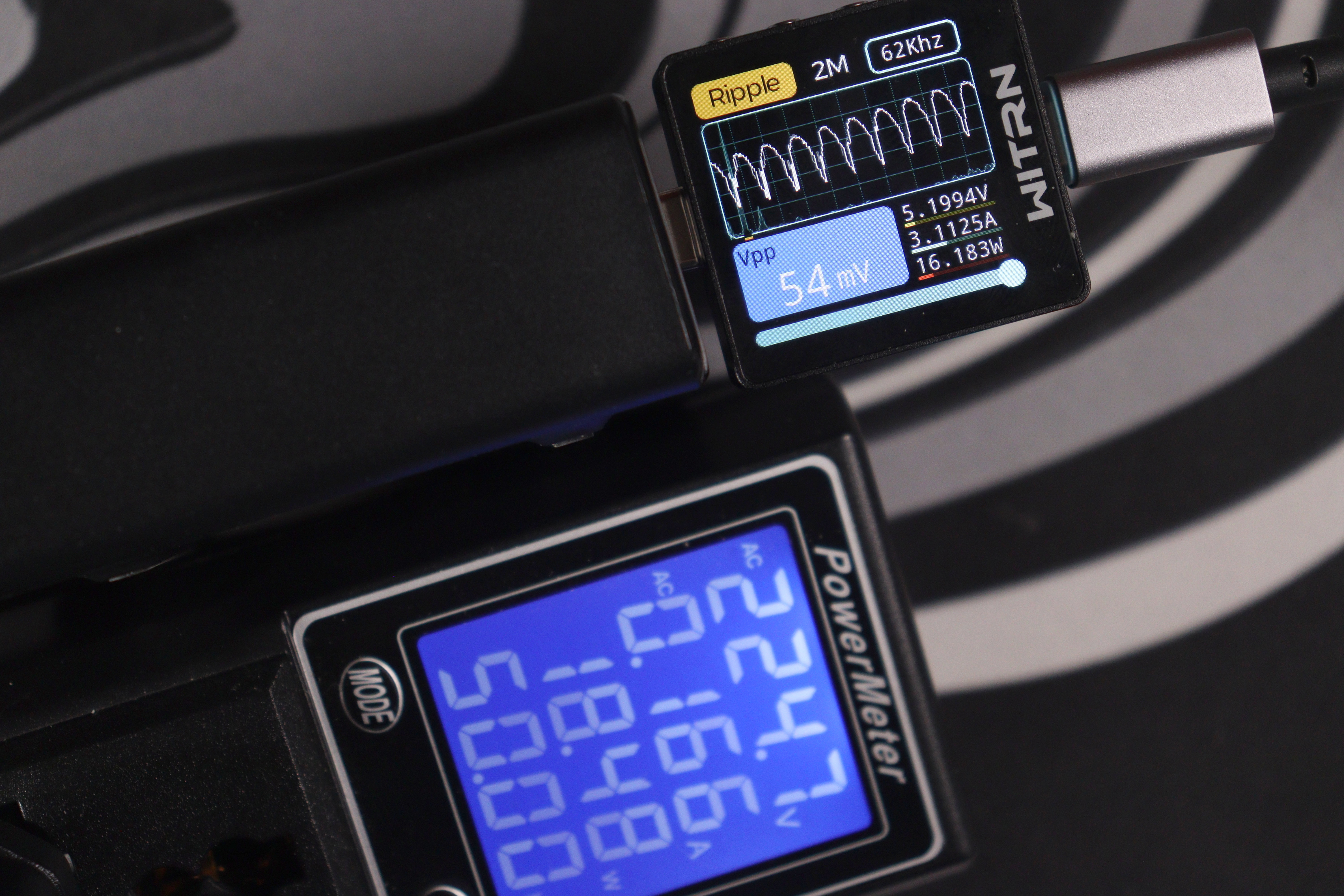 Главное преимущество перед более дорогой Nexode CD327 — отсутствие перезагрузки портов при подключении новых устройств и PPS до 5А. Это реально удобно в повседневном использовании: можно спокойно подключить ещё один гаджет, и зарядка мгновенно перераспределит мощность без разрыва питания на уже работающих портах. Nexode при всех своих достоинствах такой фичи не имеет — там при изменении конфигурации портов происходит кратковременная перезагрузка всех линий. Качество пластика, конечно, хуже — покрытие быстро пачкается и выглядит дешевле, но это скорее эстетический момент, который не влияет на работу. Замеры показали отличное качество выходного сигнала: низкие пульсации на всех режимах работы, стабильное напряжение даже при пиковой нагрузке, минимальный нагрев благодаря эффективным GaN-компонентам.
