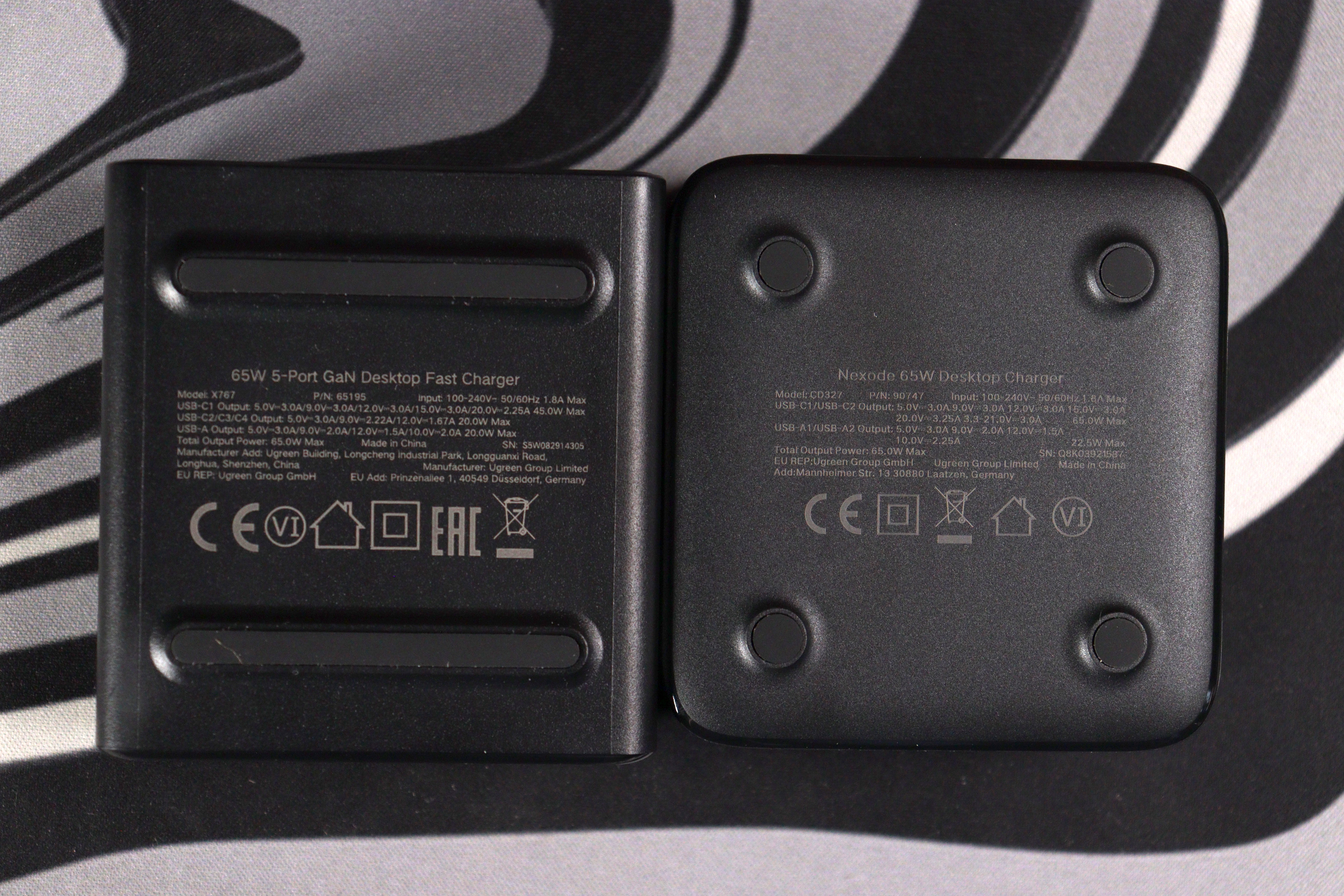 Сравнение с Nexode CD327 показывает почти идентичные габариты — разница буквально в паре миллиметров. Обе зарядки одинаково компактны для своей мощности, но Nexode выглядит солиднее благодаря качественному серому покрытию.