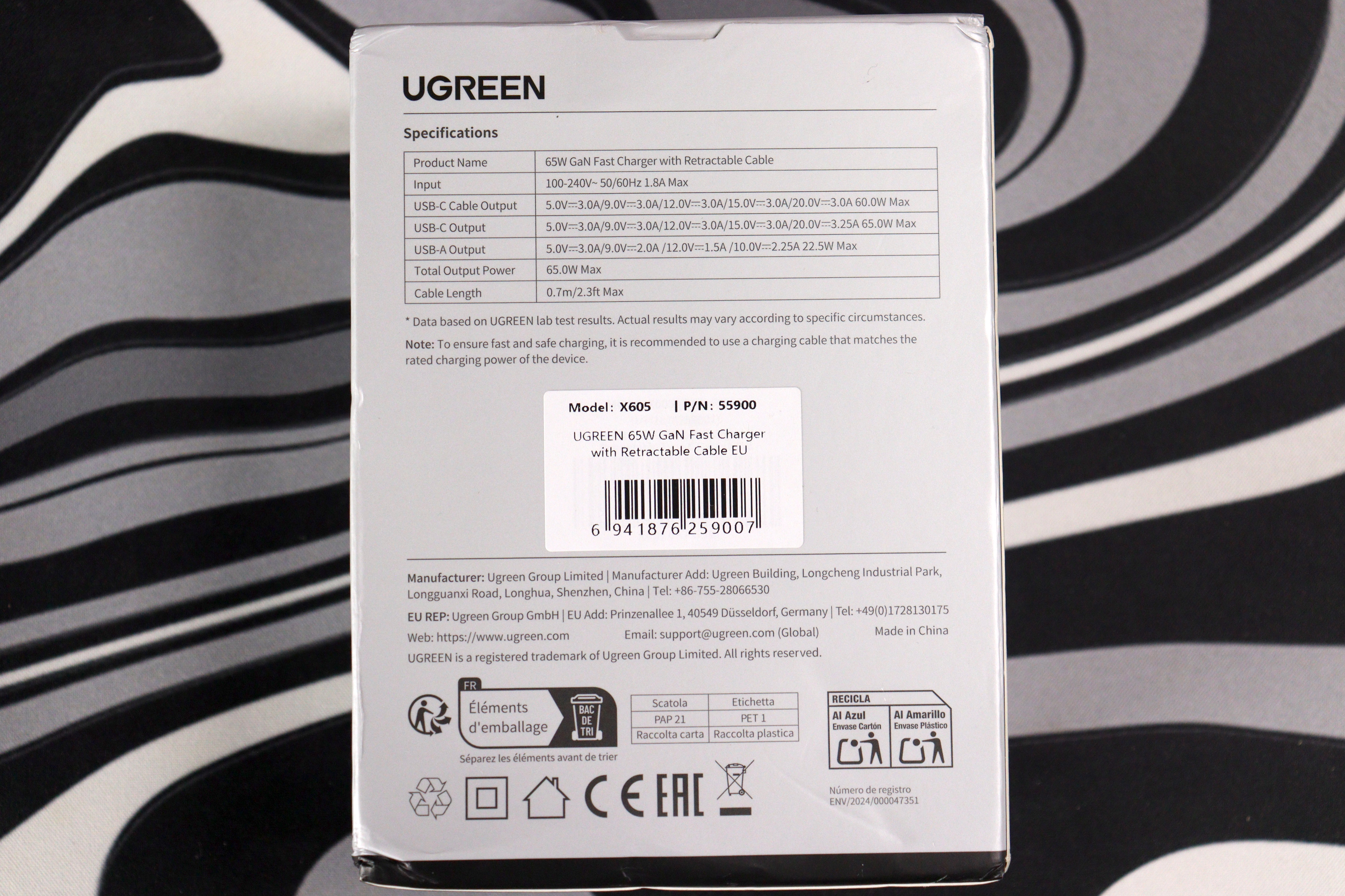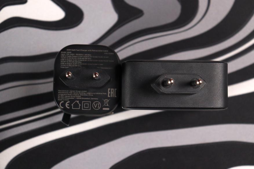 Как и было отмечено, зарядный блок отличается впечатляющей компактностью. Чтобы продемонстрировать его миниатюрность, я привел сравнение с флагманским настенным адаптером мощностью 200 Вт и полной линейкой рулеточных моделей на 45Вт, 65Вт (обозреваемый экземпляр) и 100Вт. Наглядно видно, что, несмотря на свою функциональность, устройство занимает минимум места.