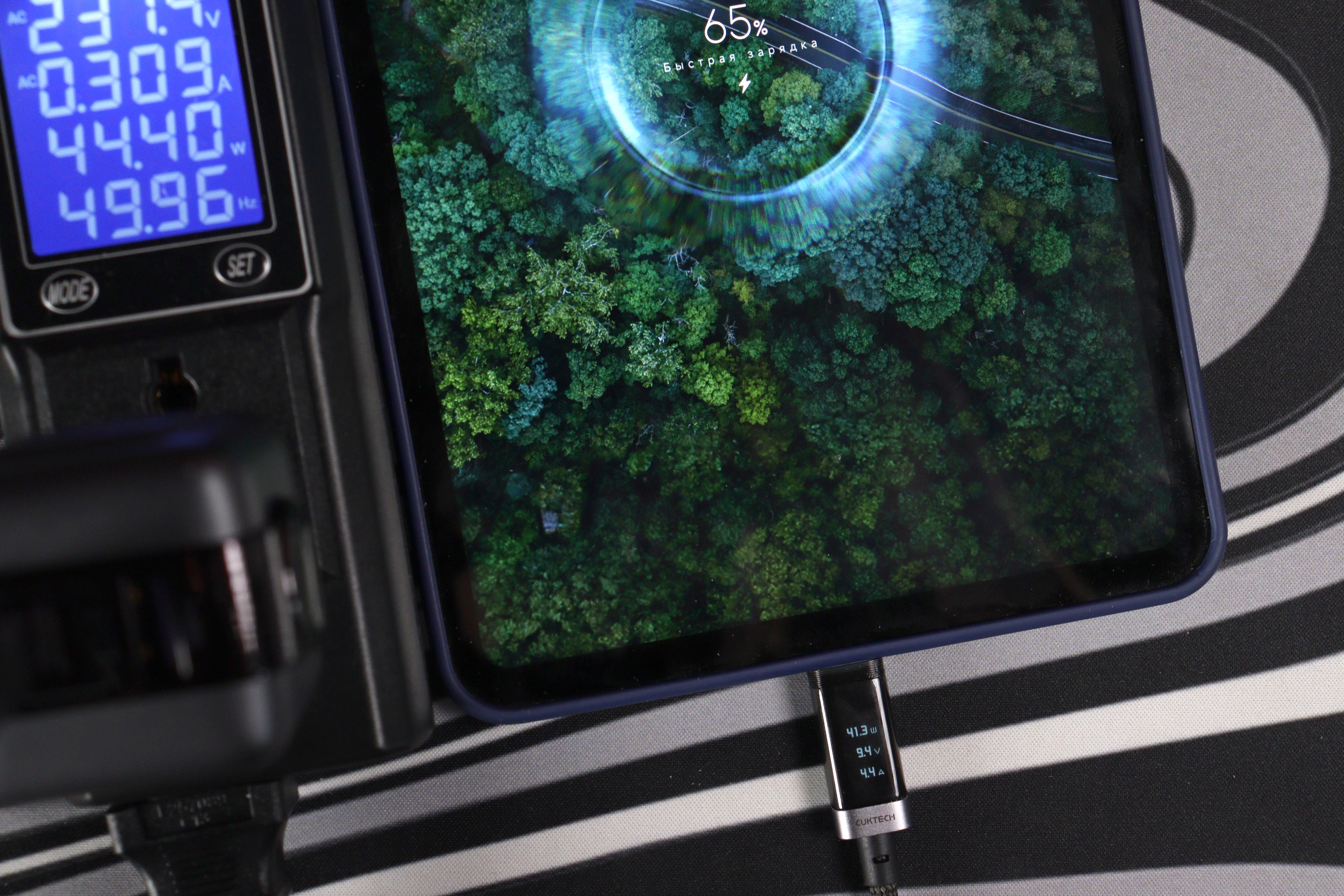 Планшет Xiaomi Pad Mini вместе с оригинальным кабелем Cuktech No.6 достигал предельной для себя скорости зарядки не от комплектного адаптера, а от стороннего блока мощностью до 45 Вт.