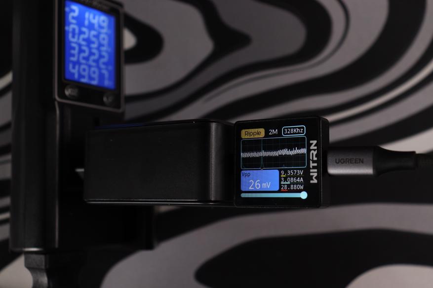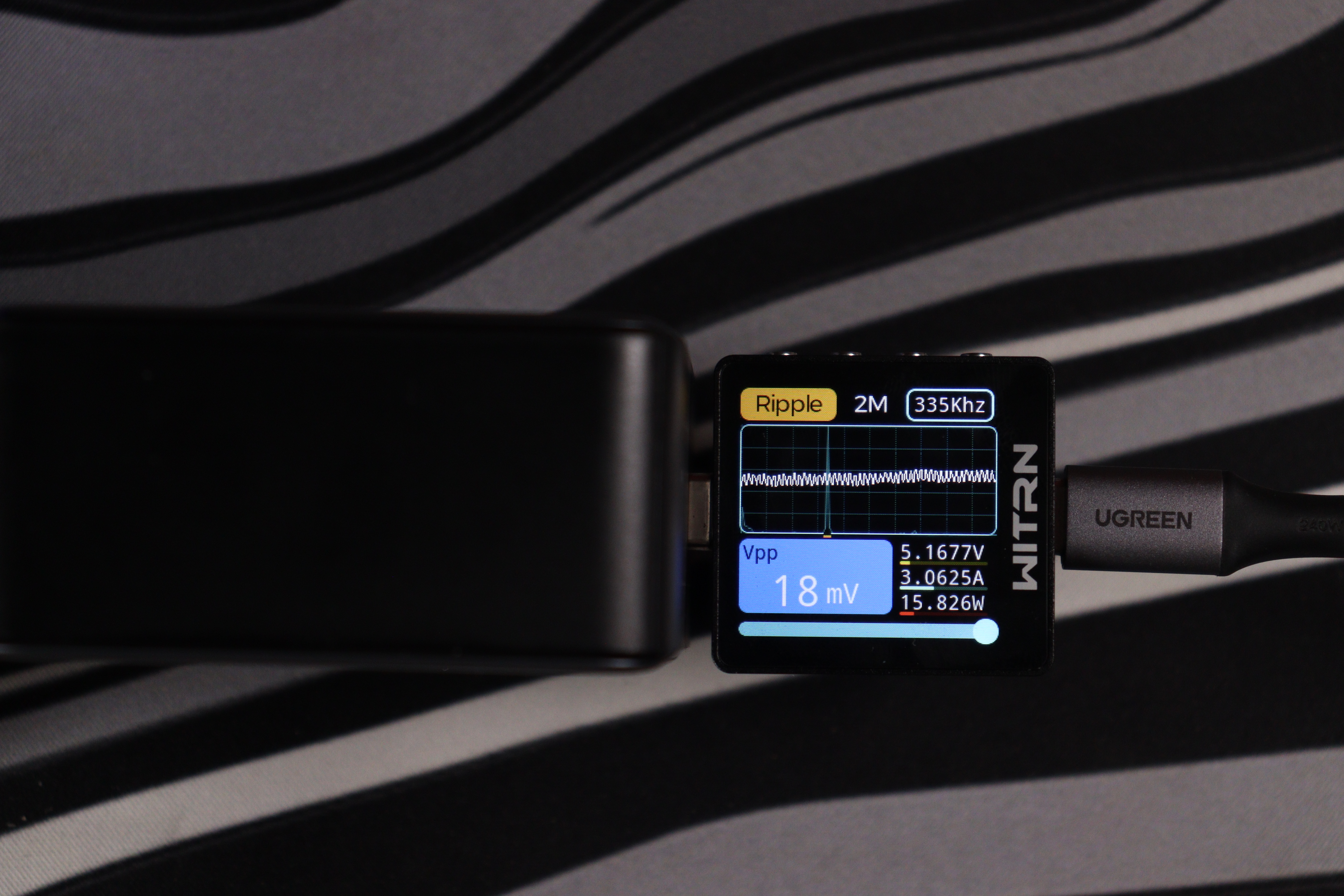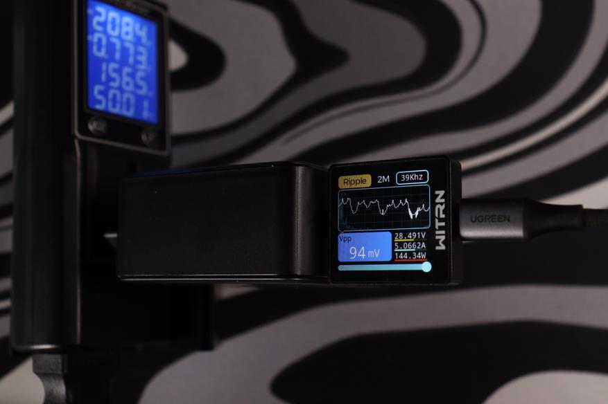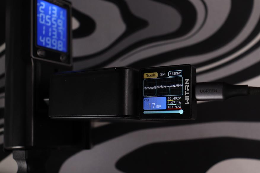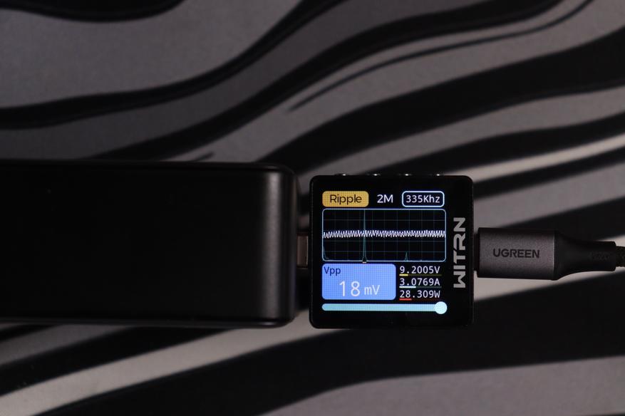 Пульсации напряжения на всех четырех портах (USB-C1, C2, C3, и USB-A) продемонстрировали исключительно низкие значения — в подавляющем большинстве случаев менее 30мВ (за исключением режимов 20V и 28V на C1, где они также остаются в пределах отличных показателей до 94мВ, что гарантирует стабильное и безопасное питание для заряжаемых устройств, включая чувствительную электронику.