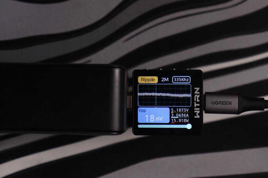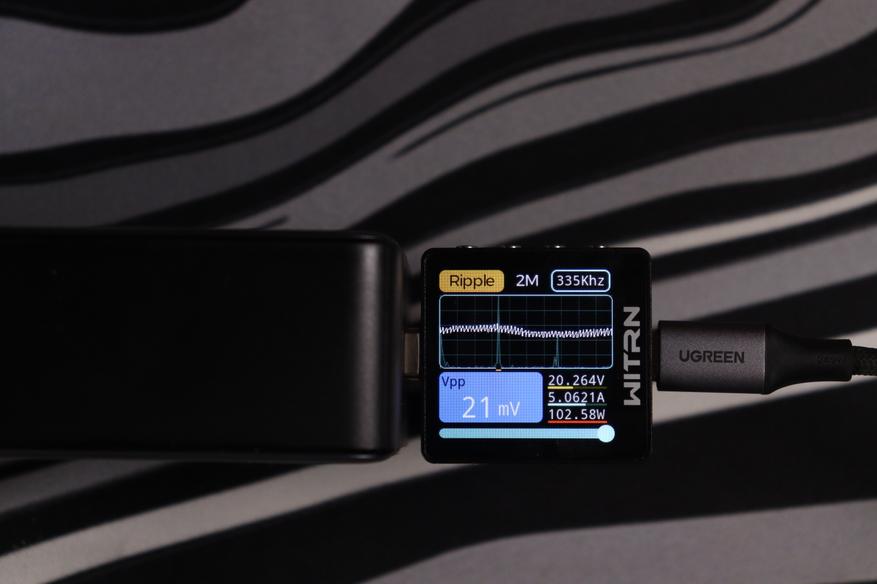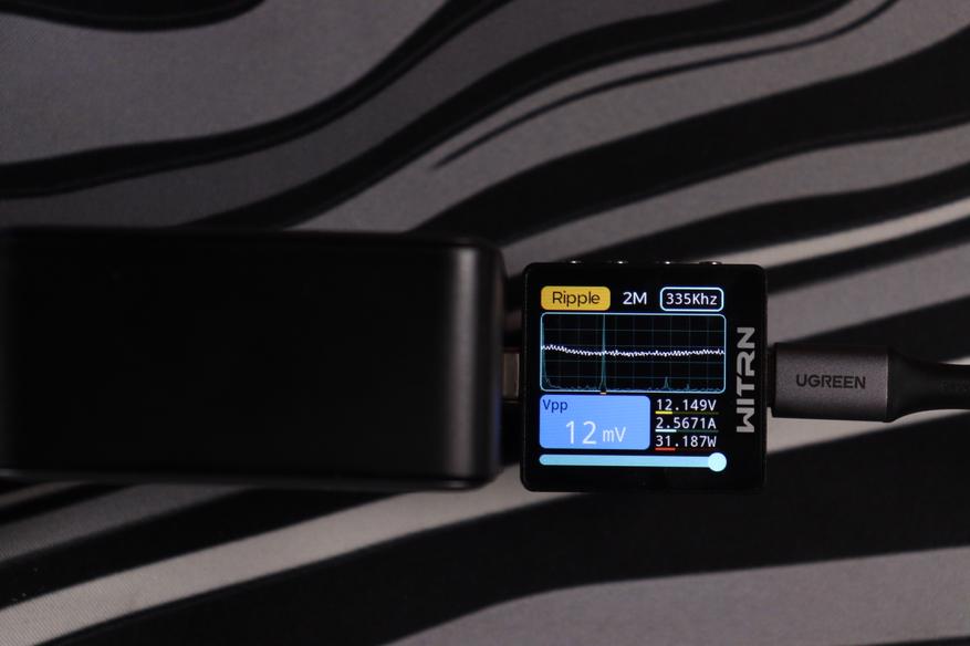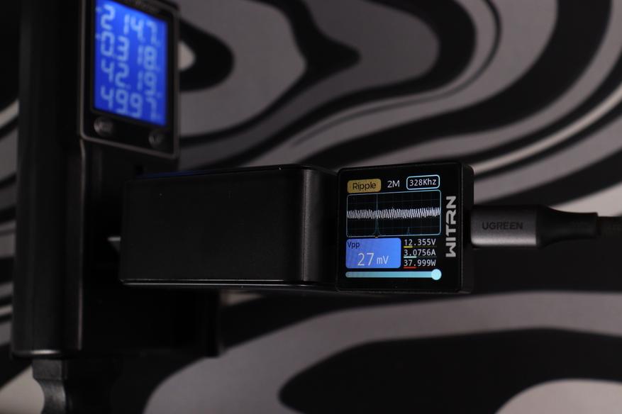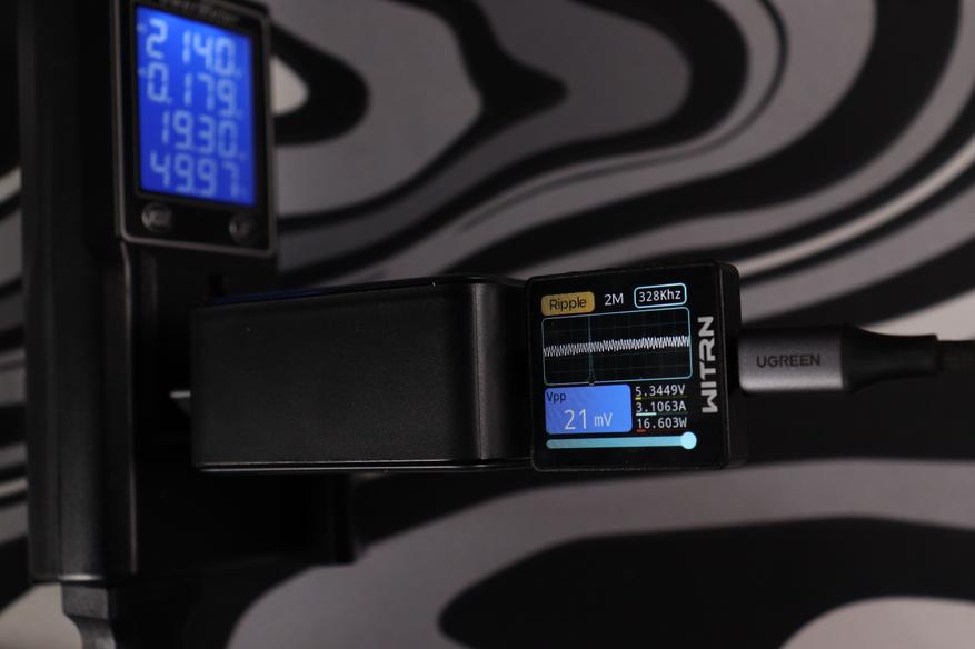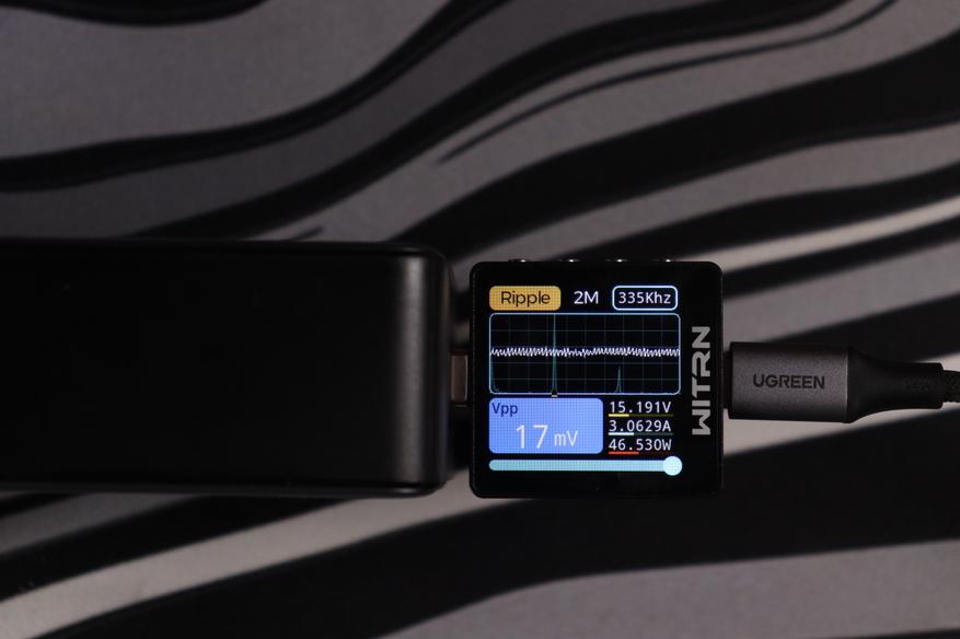 Пульсации напряжения на всех четырех портах (USB-C1, C2, C3, и USB-A) продемонстрировали исключительно низкие значения — в подавляющем большинстве случаев менее 30мВ (за исключением режимов 20V и 28V на C1, где они также остаются в пределах отличных показателей до 94мВ, что гарантирует стабильное и безопасное питание для заряжаемых устройств, включая чувствительную электронику.